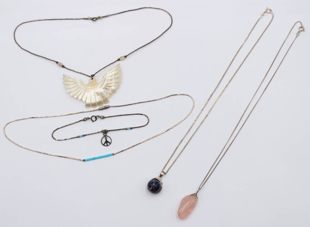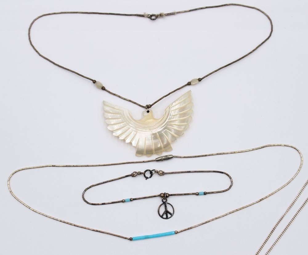 Konvolut div. Ketten und ein Armband, Silber, 1x Perlmuttanhänger, ca. L-42cm [1]