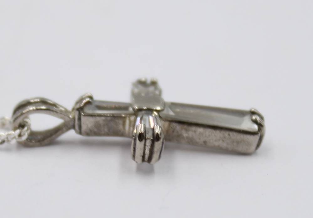 Kreuzanhänger an Kette, 925er Silber, klare Steine, zus. ca. 4,6gr., L-45cm Anh. L-2,5cm [1]