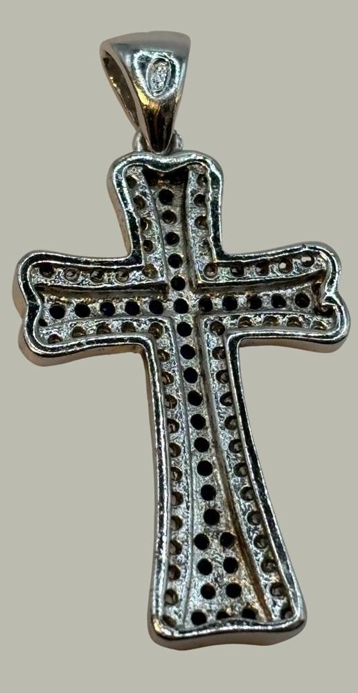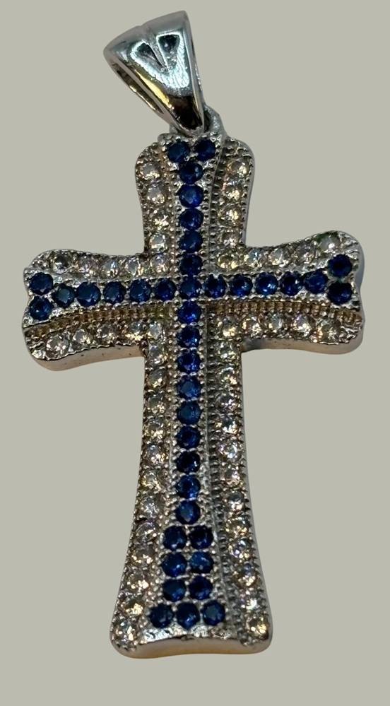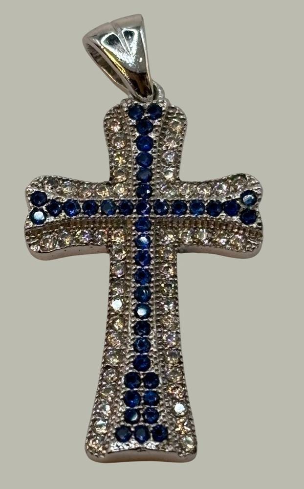 Kreuzanhänger, Silber-925-, blaue und klare Steine, 3x1,5 cm, 3,4 gr [1]