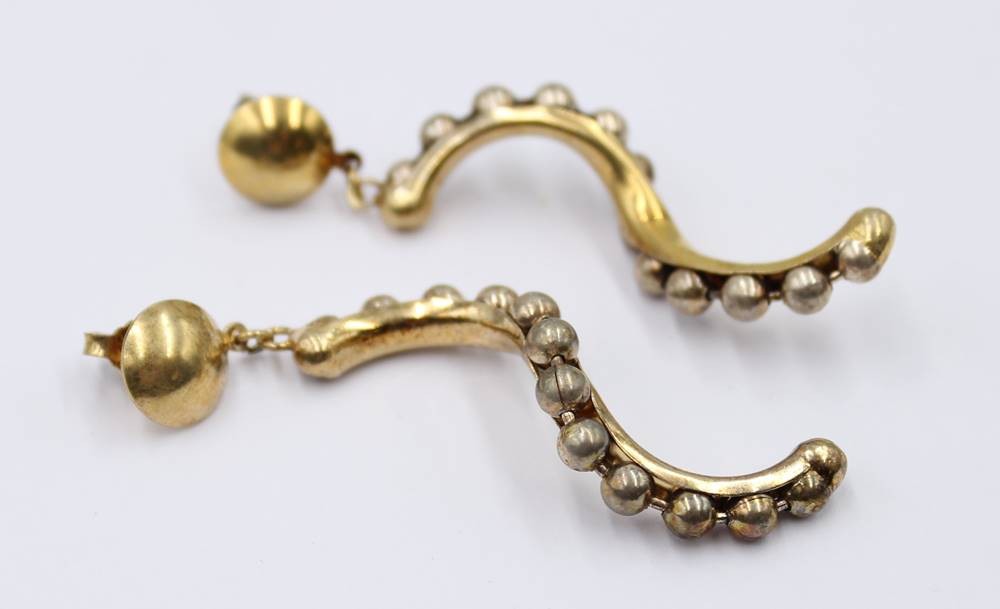lange 925er Silber-Ohrstecker, goldfarben, älter, 10,7gr., L-6cm [1]