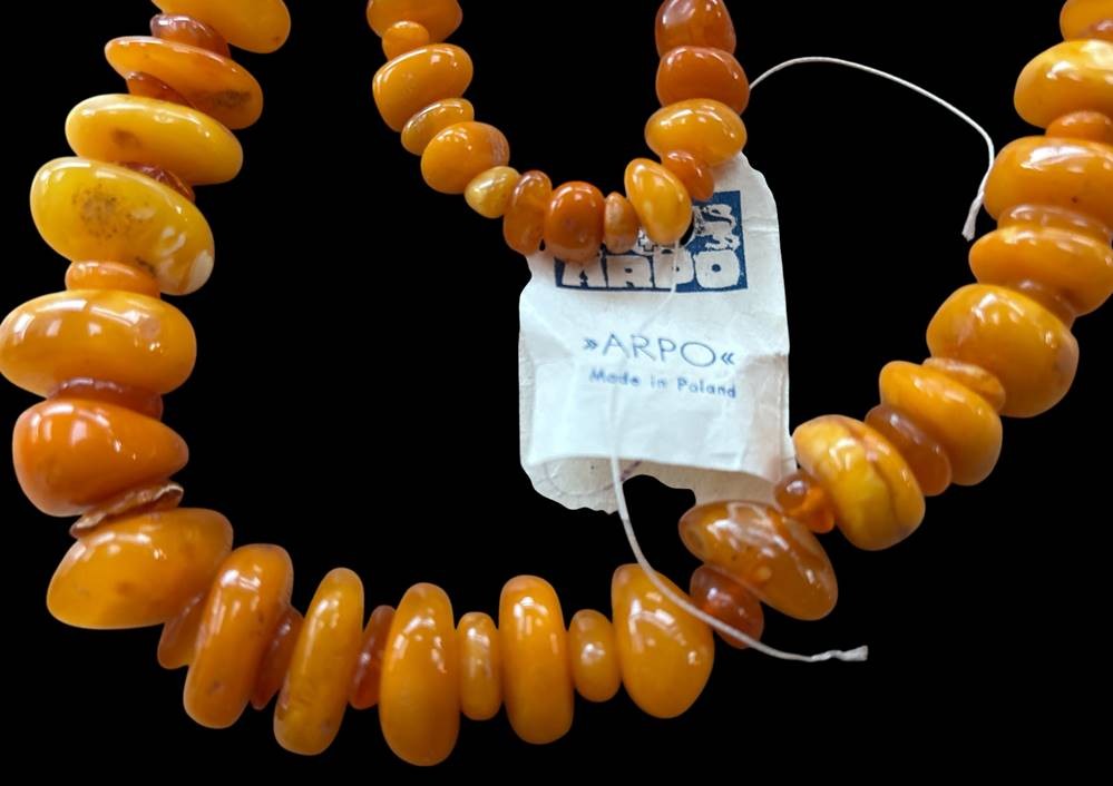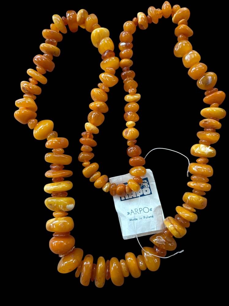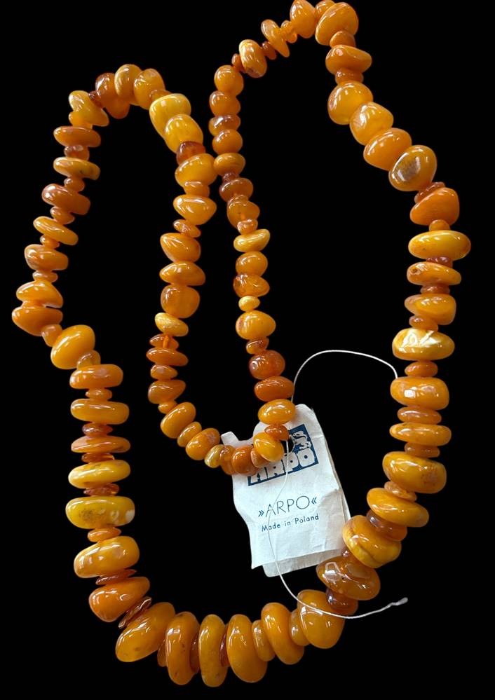 lange gelbe Bernstein-Halskette, polnisches Etikett, L-ca. 78 cm, 86 gr [1]