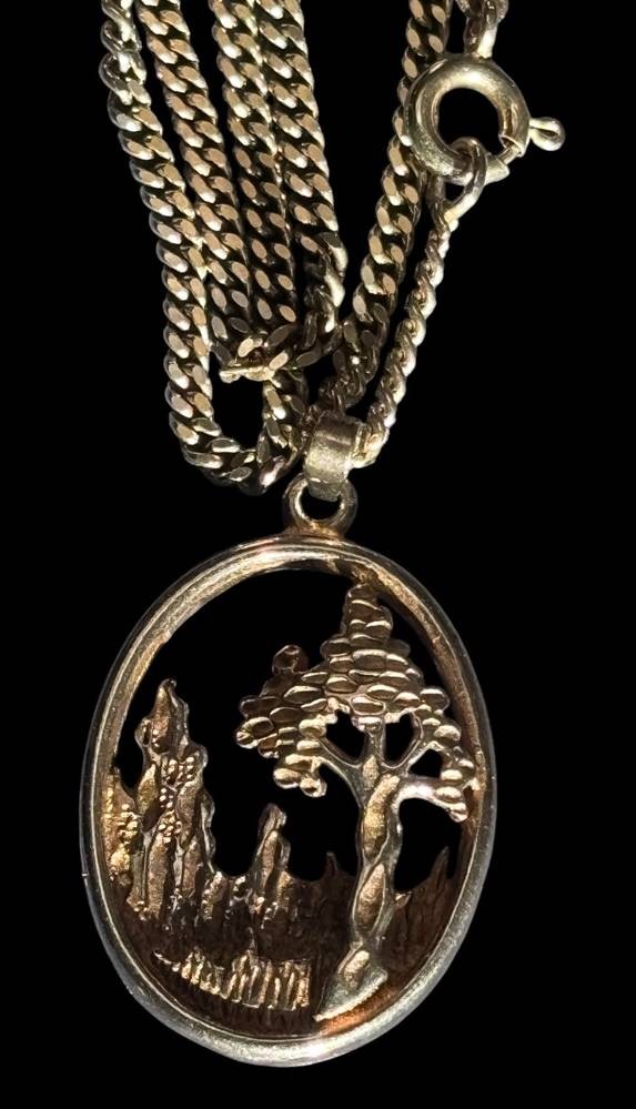 lange Halskette mit Baumanhänger, beide Silber-925-. L-ca. 60 cm, zus. 10 gr [1]