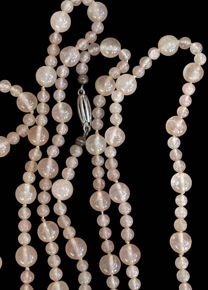 lange Halskette, Rosenquartz mit Silberschliesse-835-, L-ca. 140 cm, 50 gr [1]