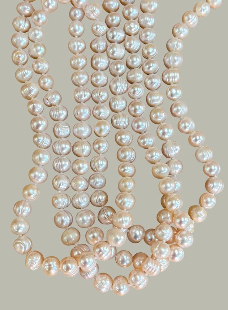 lange Perlenkette, rosa getönt, L-160 cm, endlos, D.ca. o,5-o,6 cm