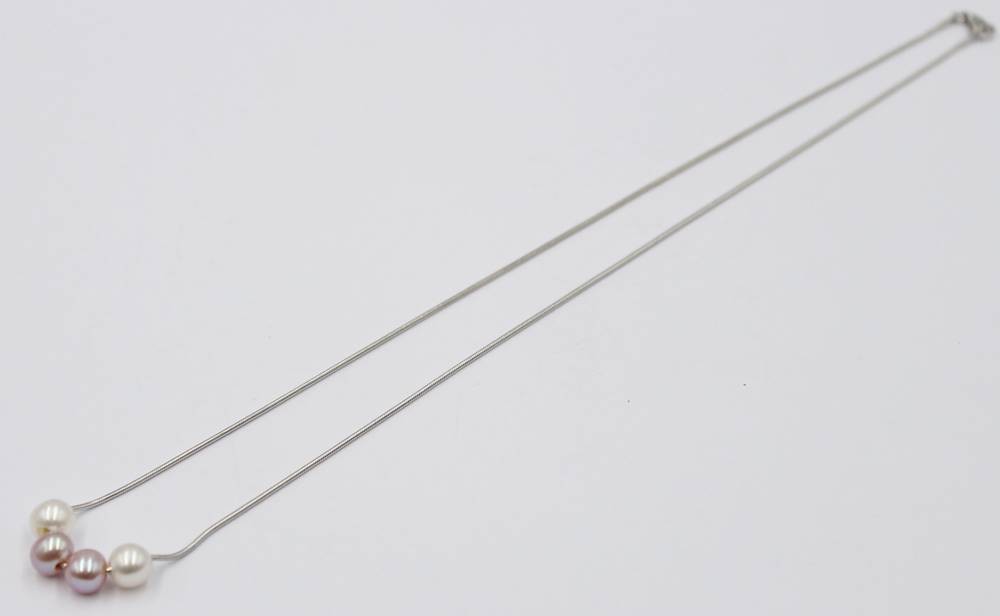 lange Schlangenhals-Silberkette mit 4 Perlanhängern, 4,2 gr, [1]