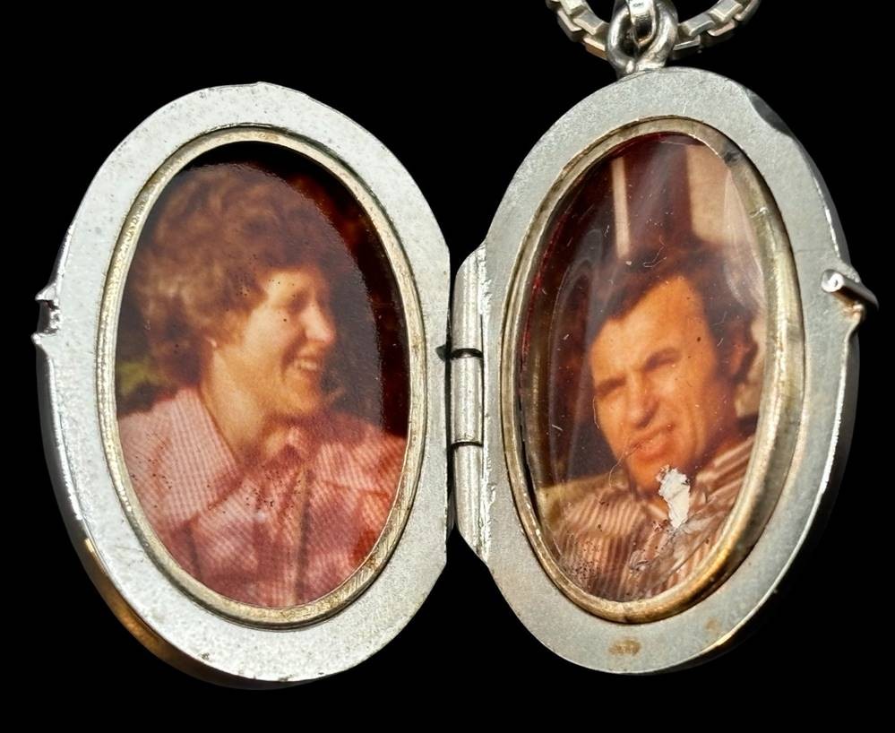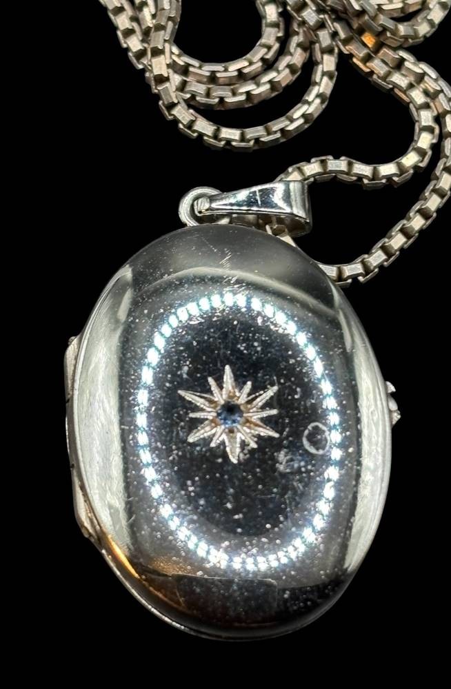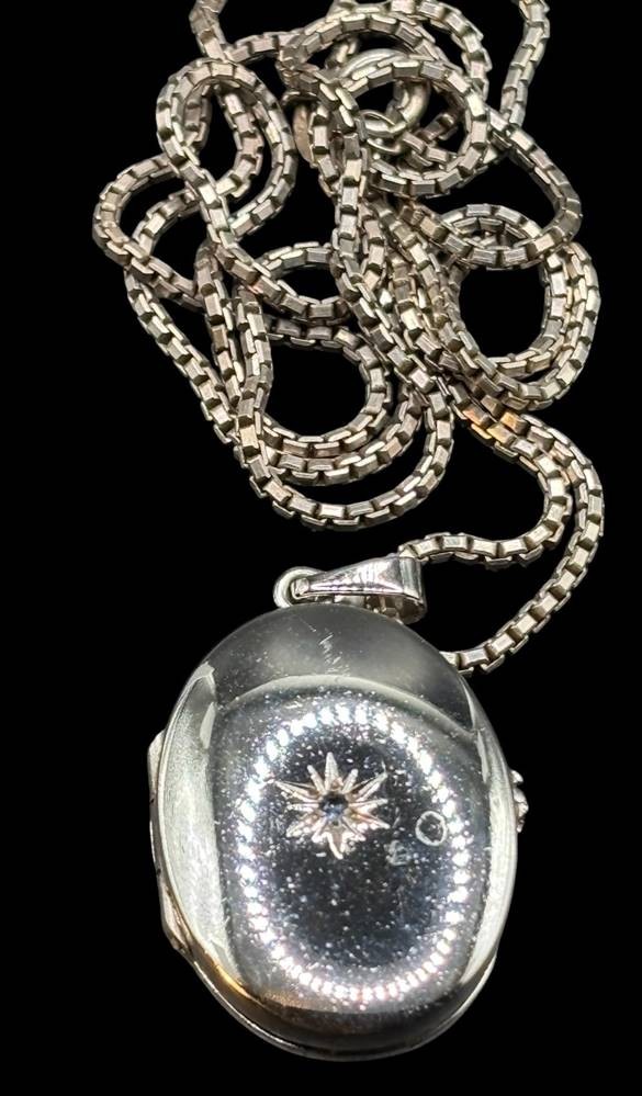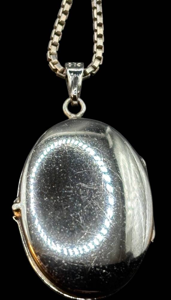 lange Silber-925- Halskette (L-60 cm) mit Silber-925- Medaillon,H-3 cm, 12,5 gr, vorne grüner Stein [1]