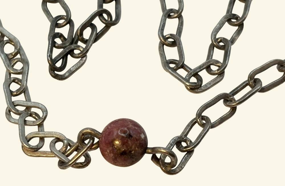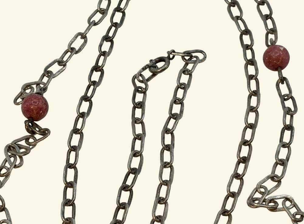 lange Silber-Halskette mit 3 Rosenquartz Kugeln, L-86 cm, 15,2 gr. [1]