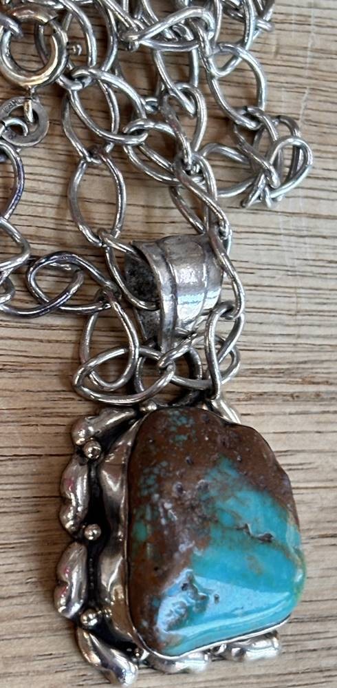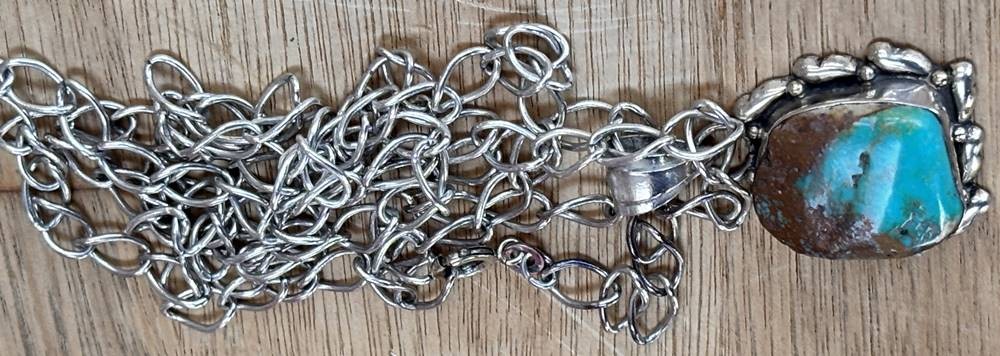 lange Silberhalskette mit Türkis-Anhänger,S-925- L-ca. 75 cm, 36,6 gr. [1]