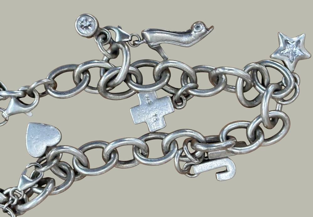 langes Armband, Silber-925- mit 6 kl. Anhängern, Italy, L- max. ca. 22 cm, zus. 59 gr [1]