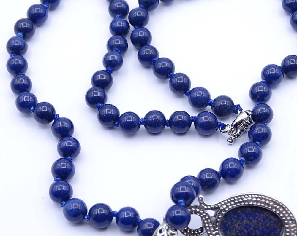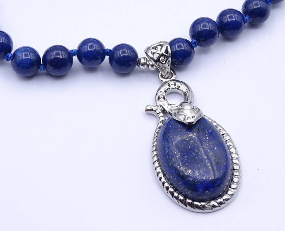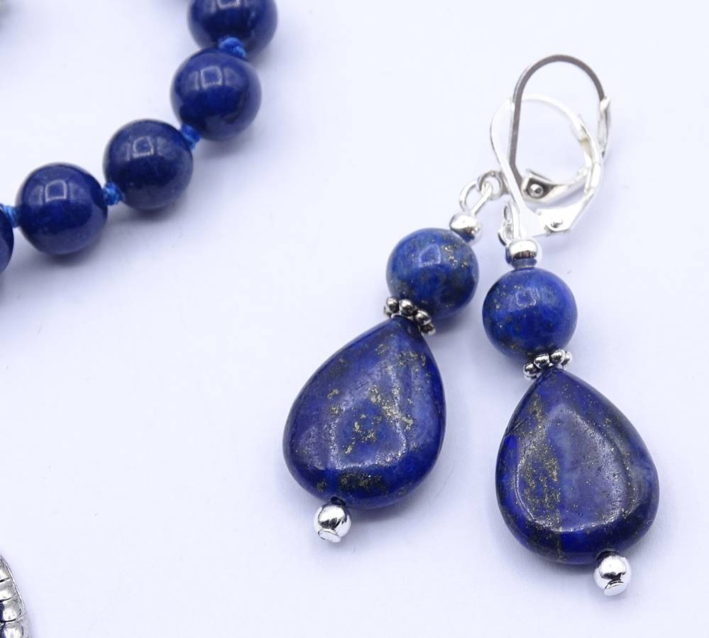 Lapislazuli Halskette und Ohrringe, Kette L. 60cm, zus. 72,4g. [1]