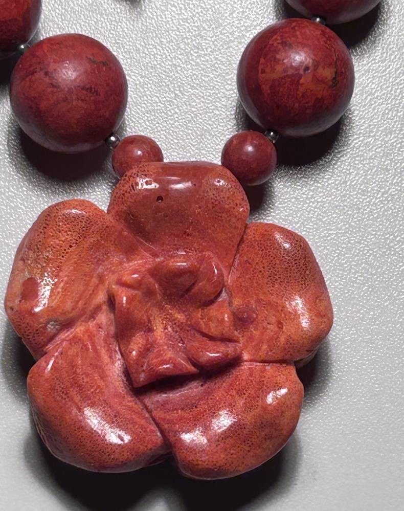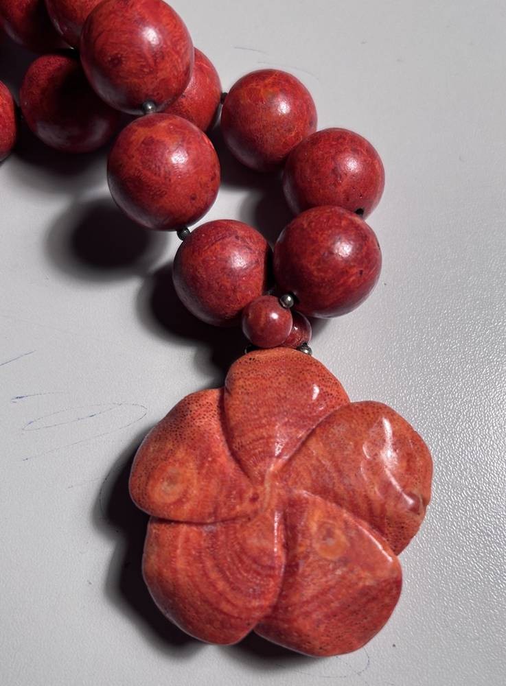 massive Schaumkorallen-Halskette mit Korallen-Anhänger, zus. ca. 190 gramm, L-Kette ca. 50 cm, Anhänger D-5 cm, Silberschliesse-925- und Kugeln D-ca. 1,5 cm, ca. 200 gr [1]