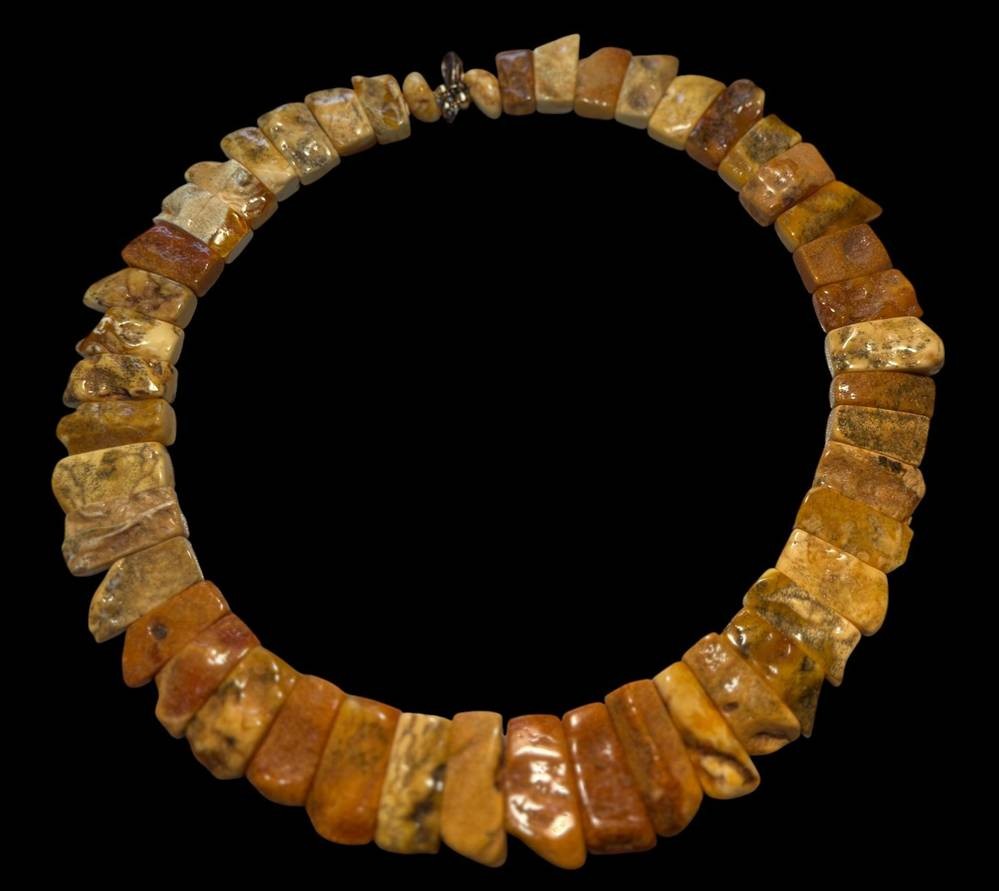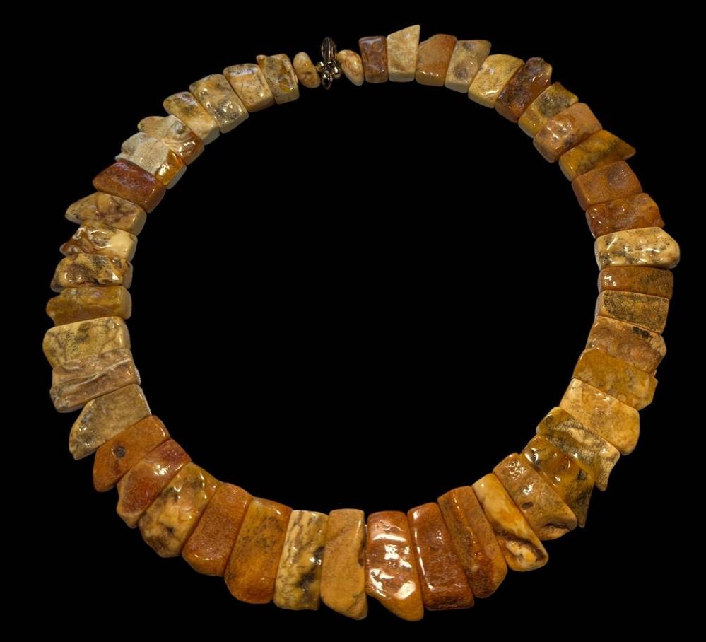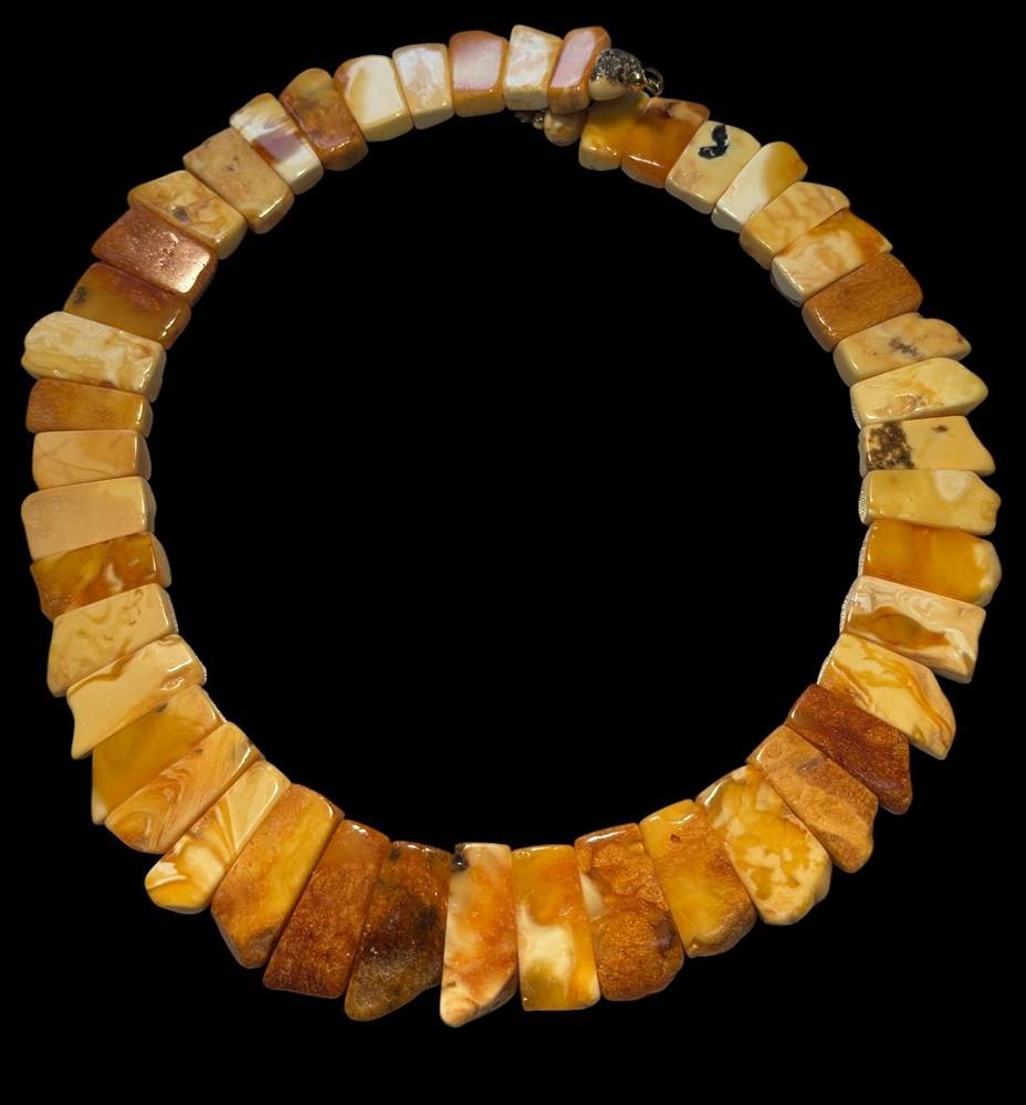 massive, starre gelb/braune Bernstein-Halskette, verlaufend, ca. 55 gr. [1]