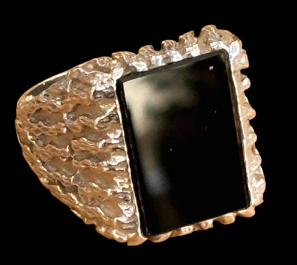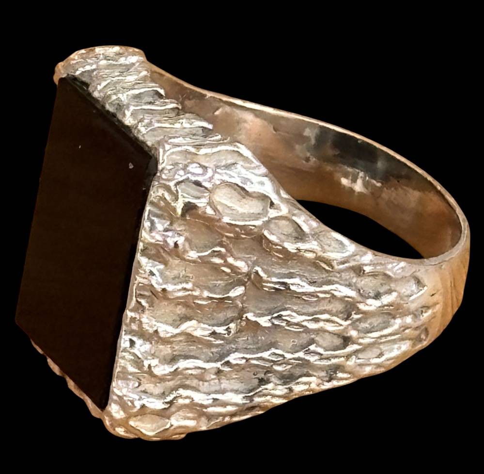 massiver 835er Silberring mit einem Onyx Lagenstein, RW 62, 8,4 gr. [1]