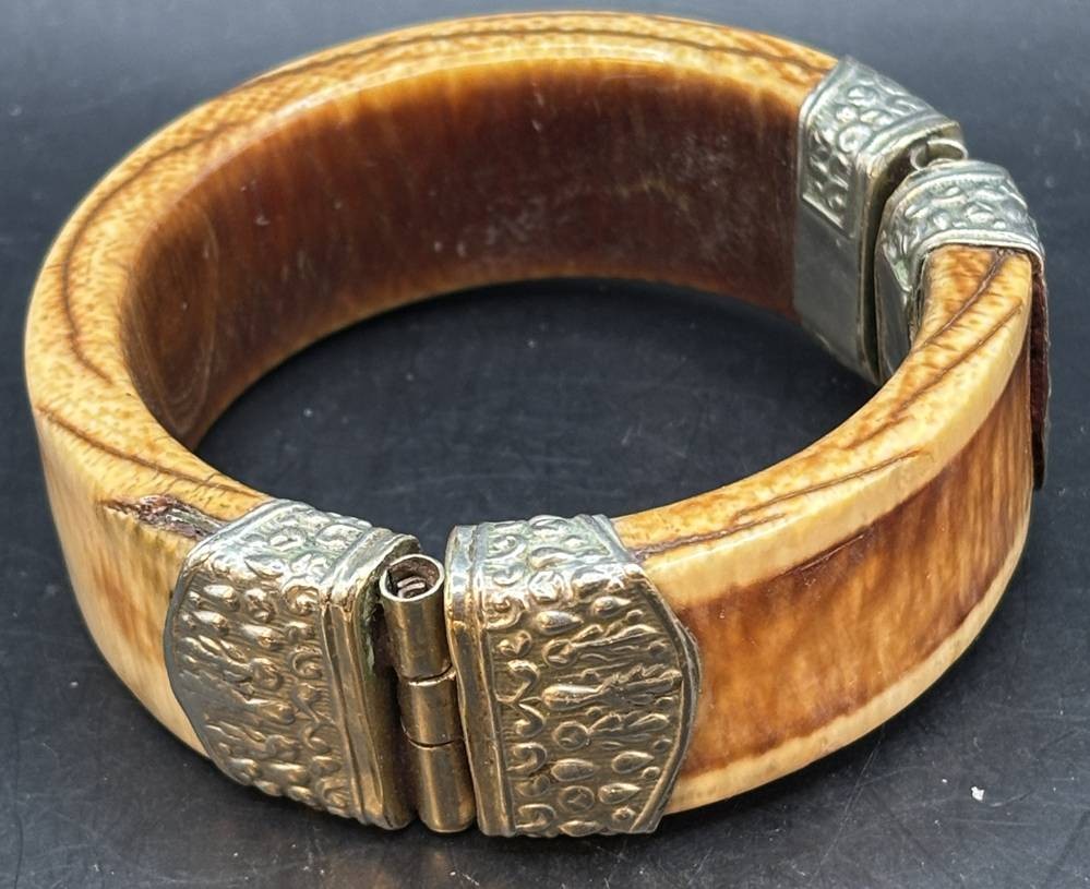 massiver Bein-Armreif, Klappscharnier, D-7 cm, H-2,5 cm, 62 gr., wohl Indien [1]