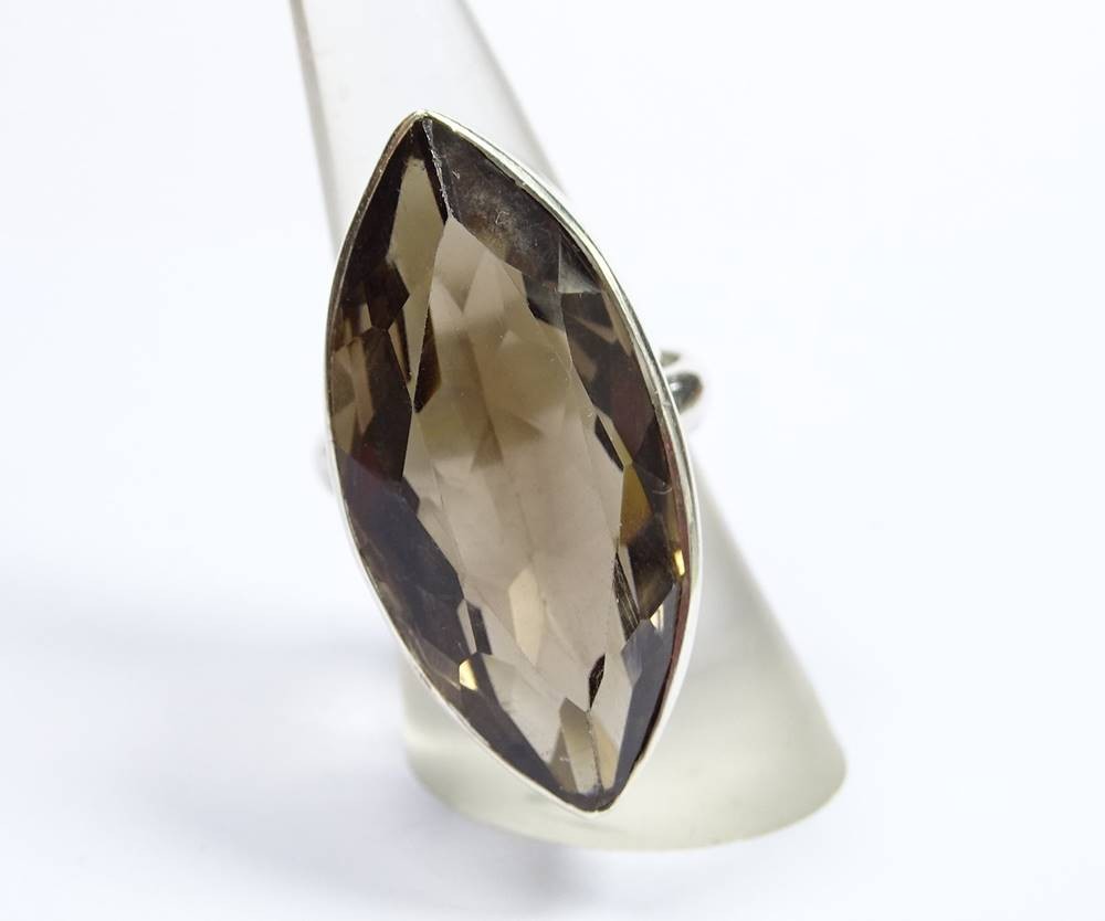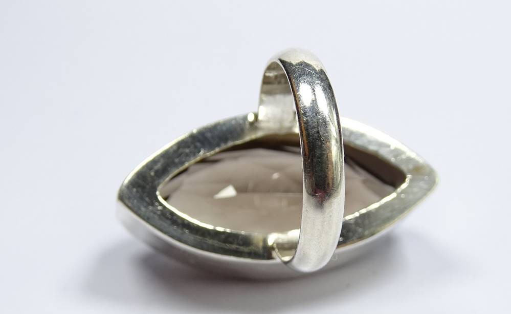 Massiver großer Silberring mit einem fac. Rauchquartz -Schiffchen RG: 58 , 16,2 g [1]
