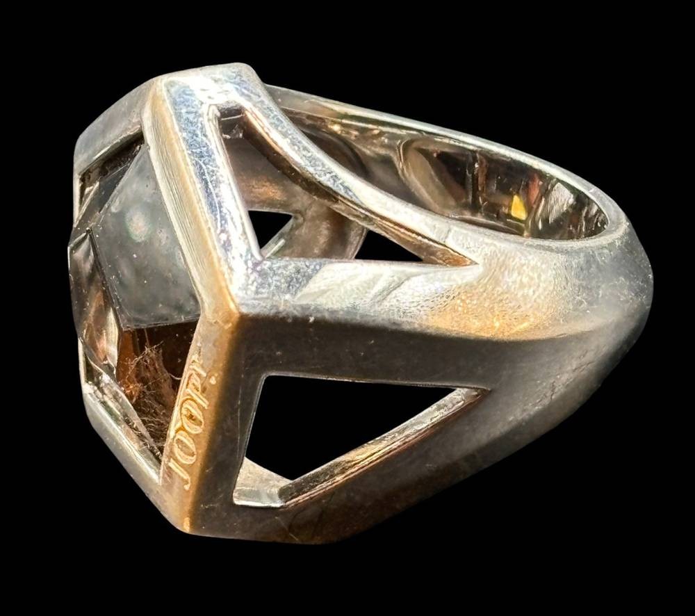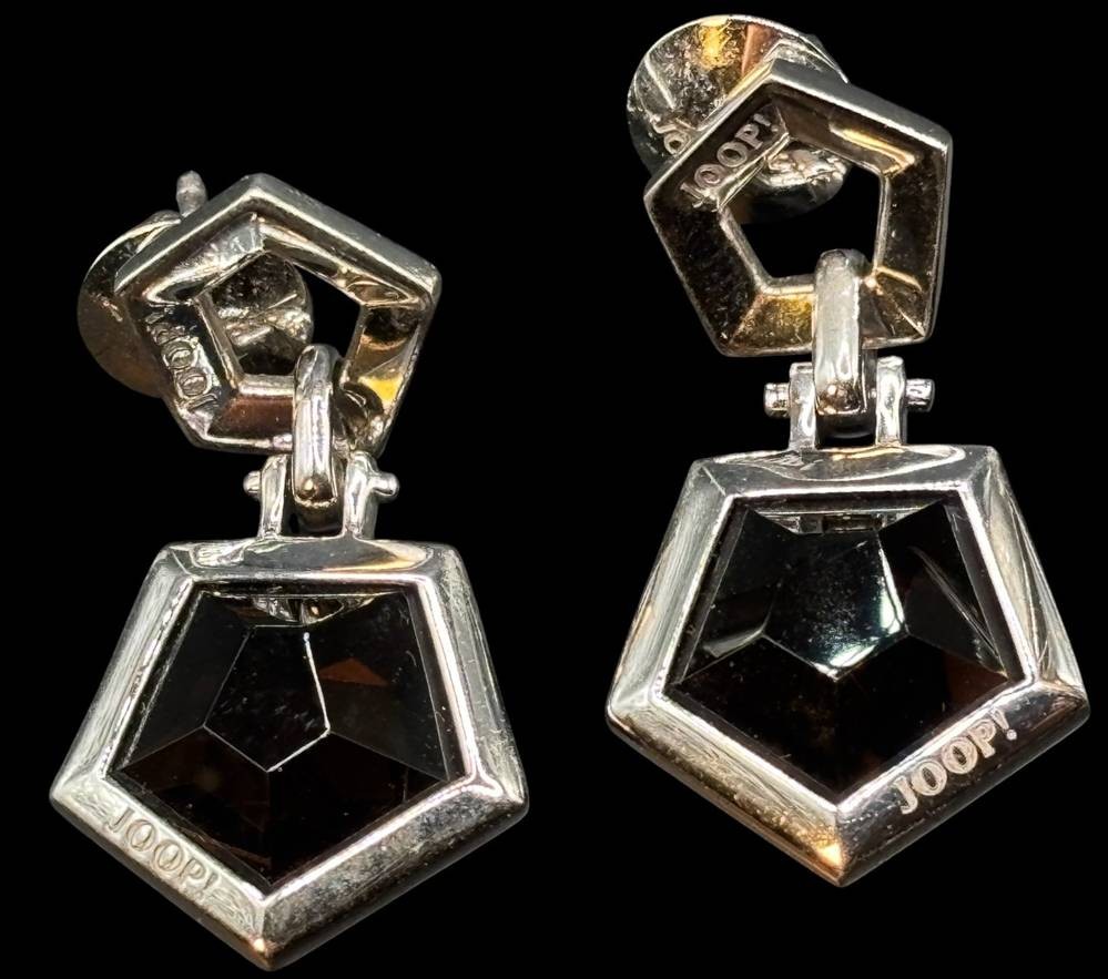 massiver Set "Joop" Ring und passende Ohrhänger, Silber-925- und Rauchquartz, RG 56, Ohrhänger L-3,5 cm, zus. 26,6 gr [1]