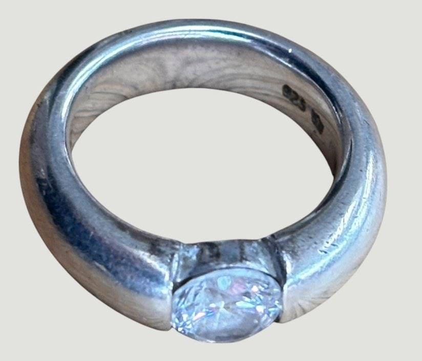 massiver Silberring-925-, gr. klarer Stein, Kronenmarke, RG 53, 16,2 gr. [1]