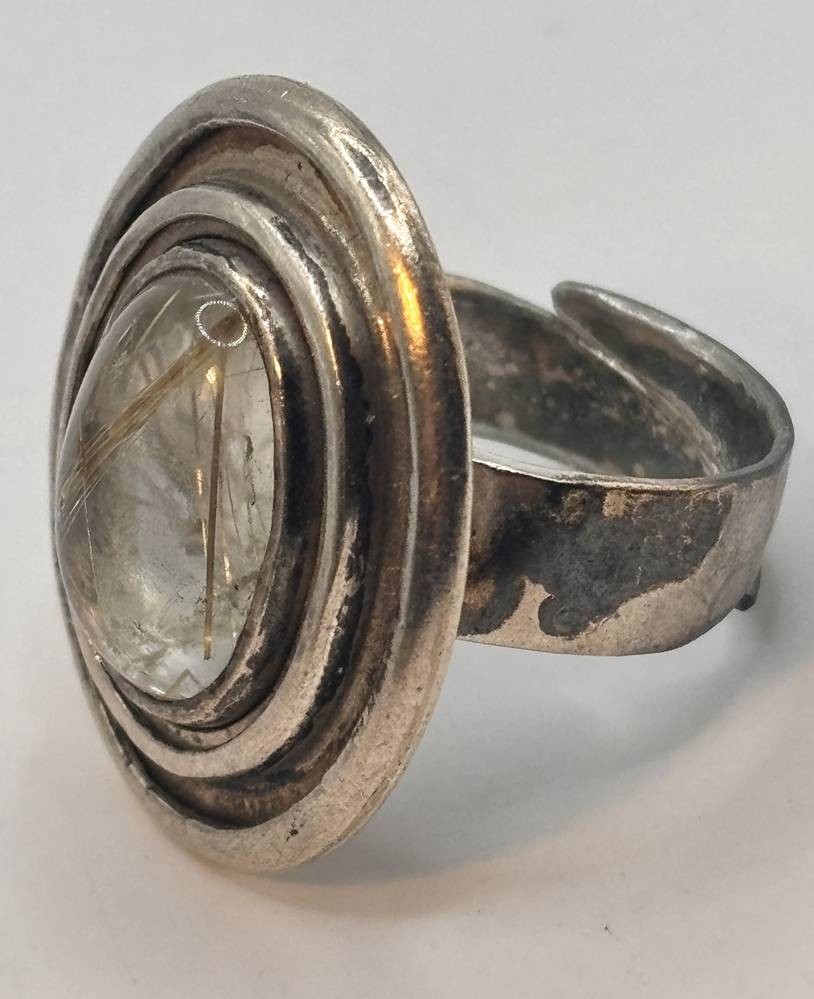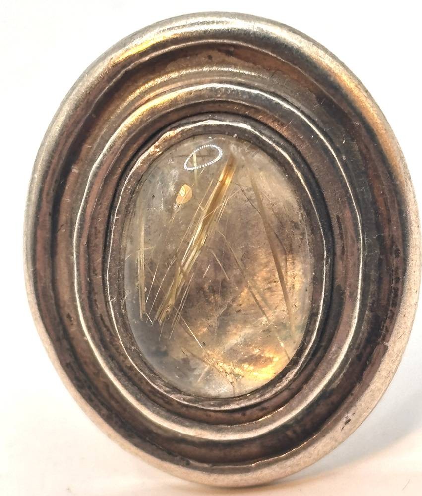 massiver Silberring, geprüft, klarer Cabouchon, Ringschene offen, 30,2 gr.,