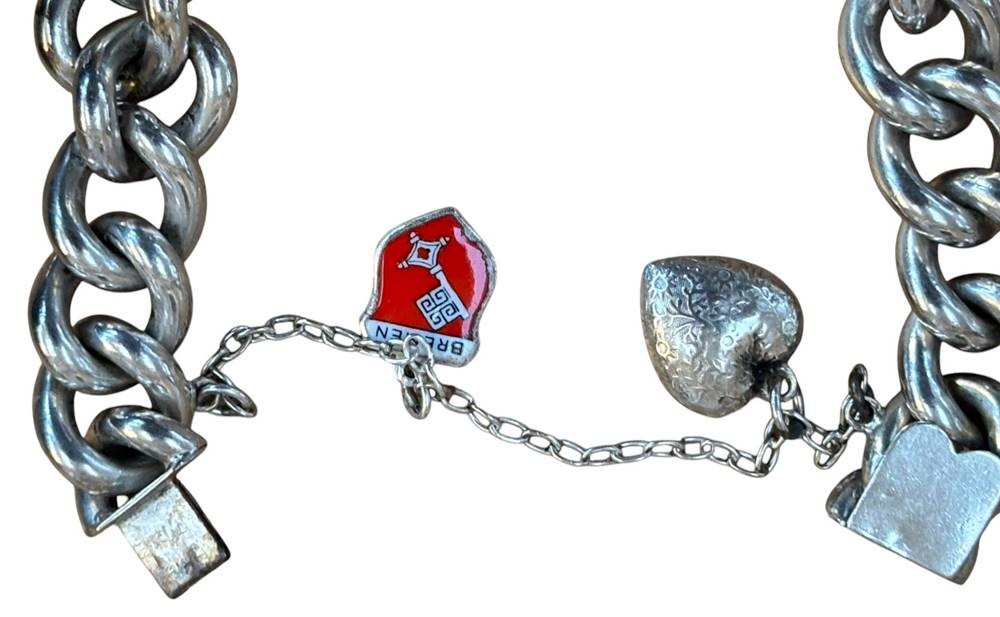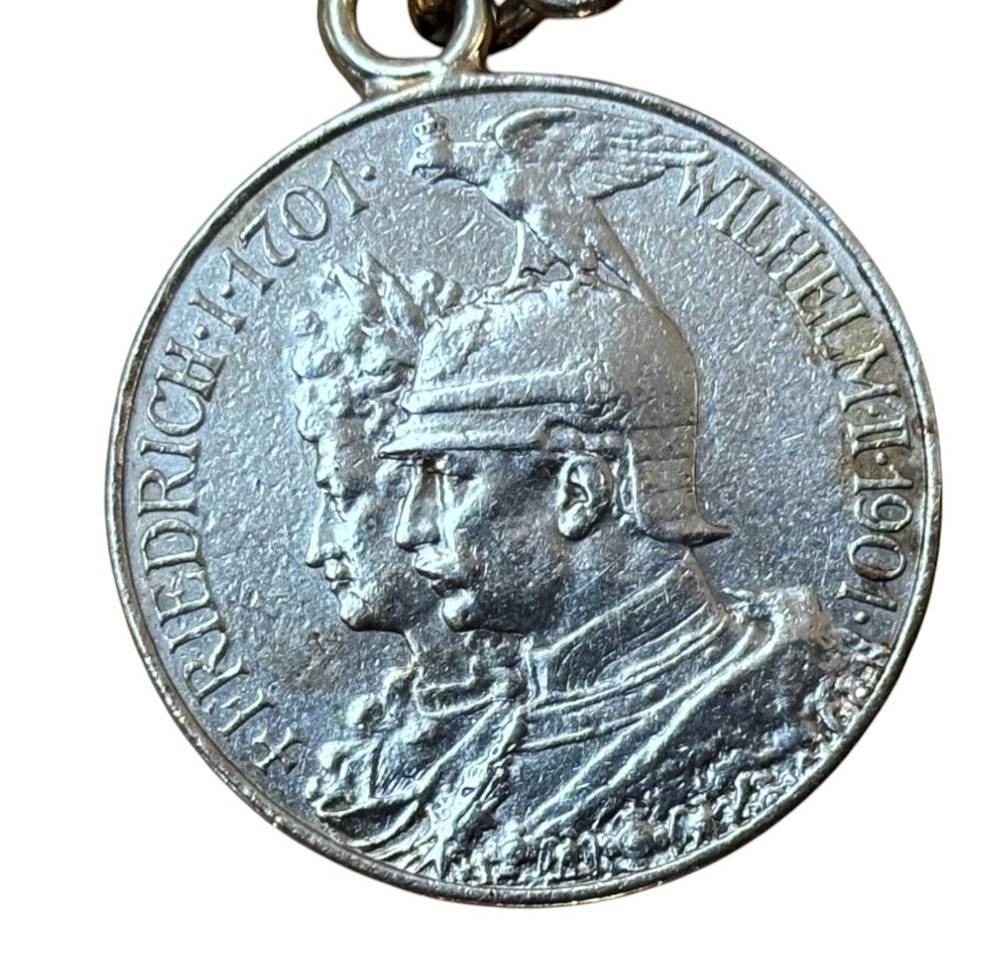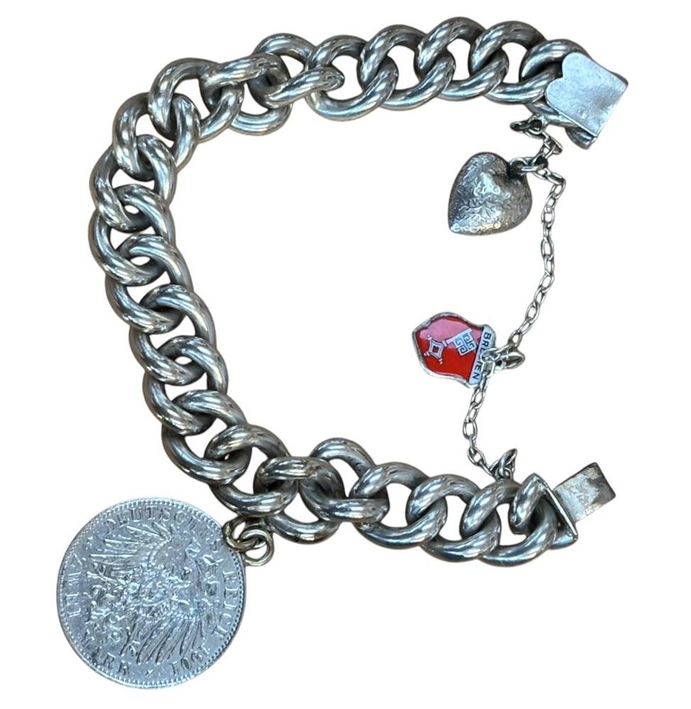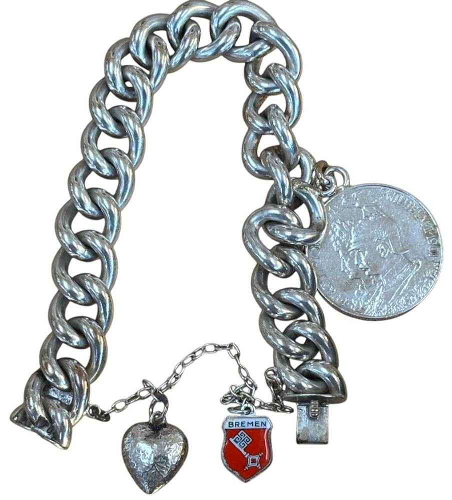 massives Armband mit Münzanhänger, Wappen und Herz, Silber-925-, 2 Mark DR 1901, Friedrich I und Wilhelm II, 93,2 gr., ca. 20 cm, Sicherheitskette [1]