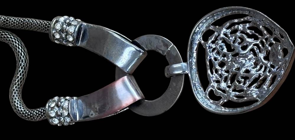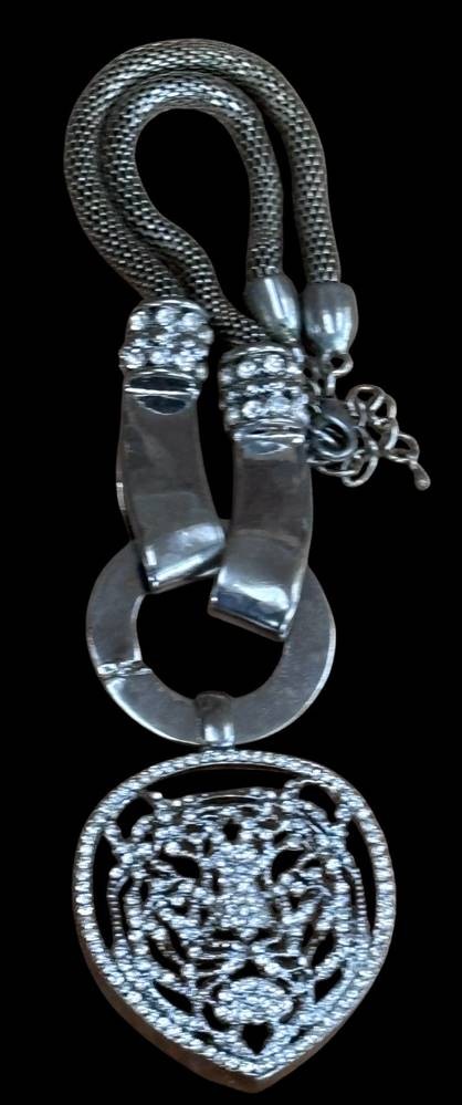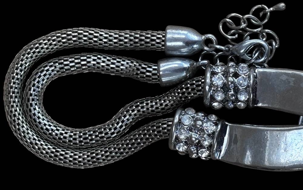 massives Edelstahl-Collier, L-max. 50 cm, klare Steine, 108 gr [1]