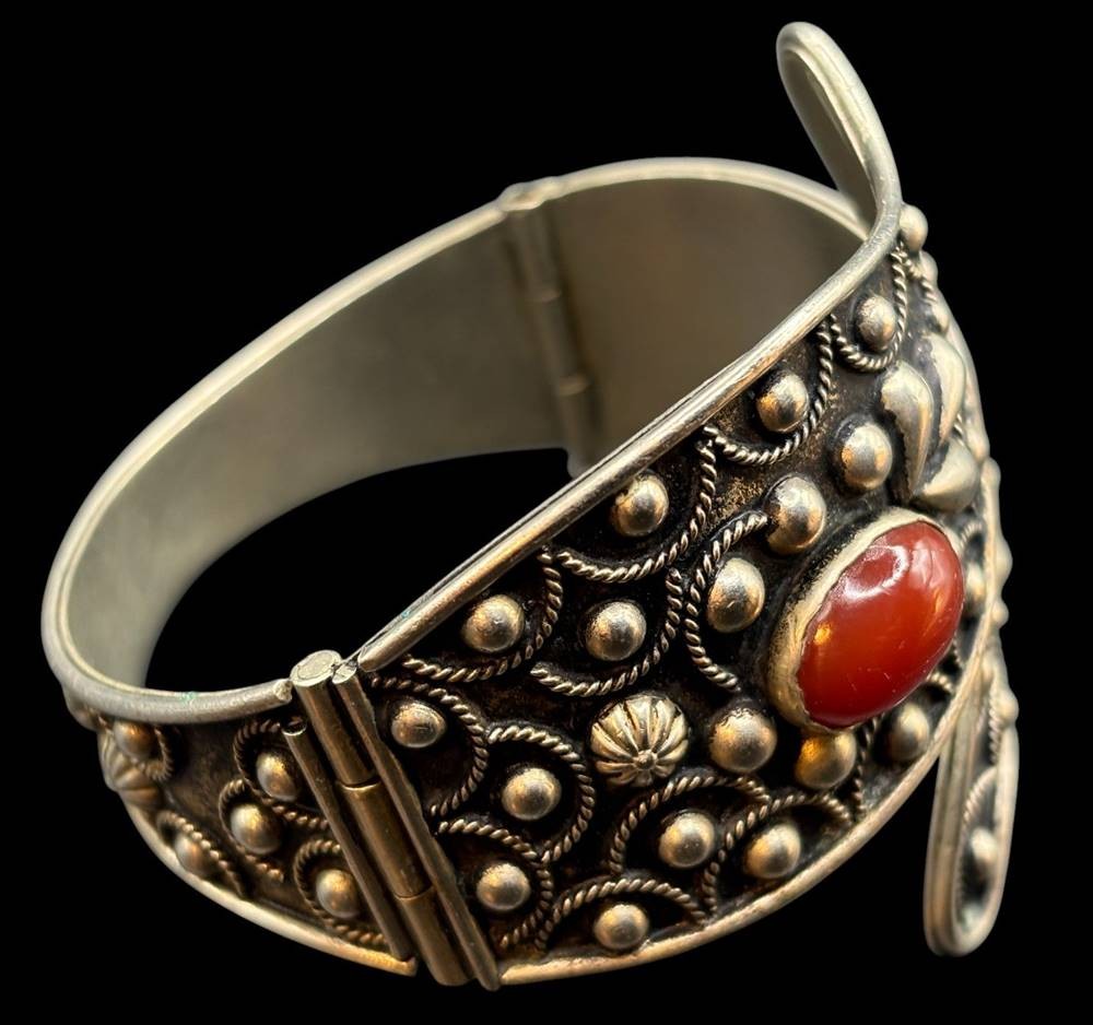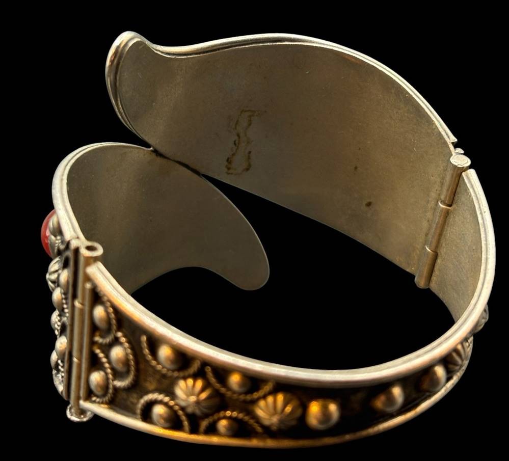 massives silberfarbenes Armband mit Klappscharnier, 2 braune Cabouchons, 45,5 cm [1]