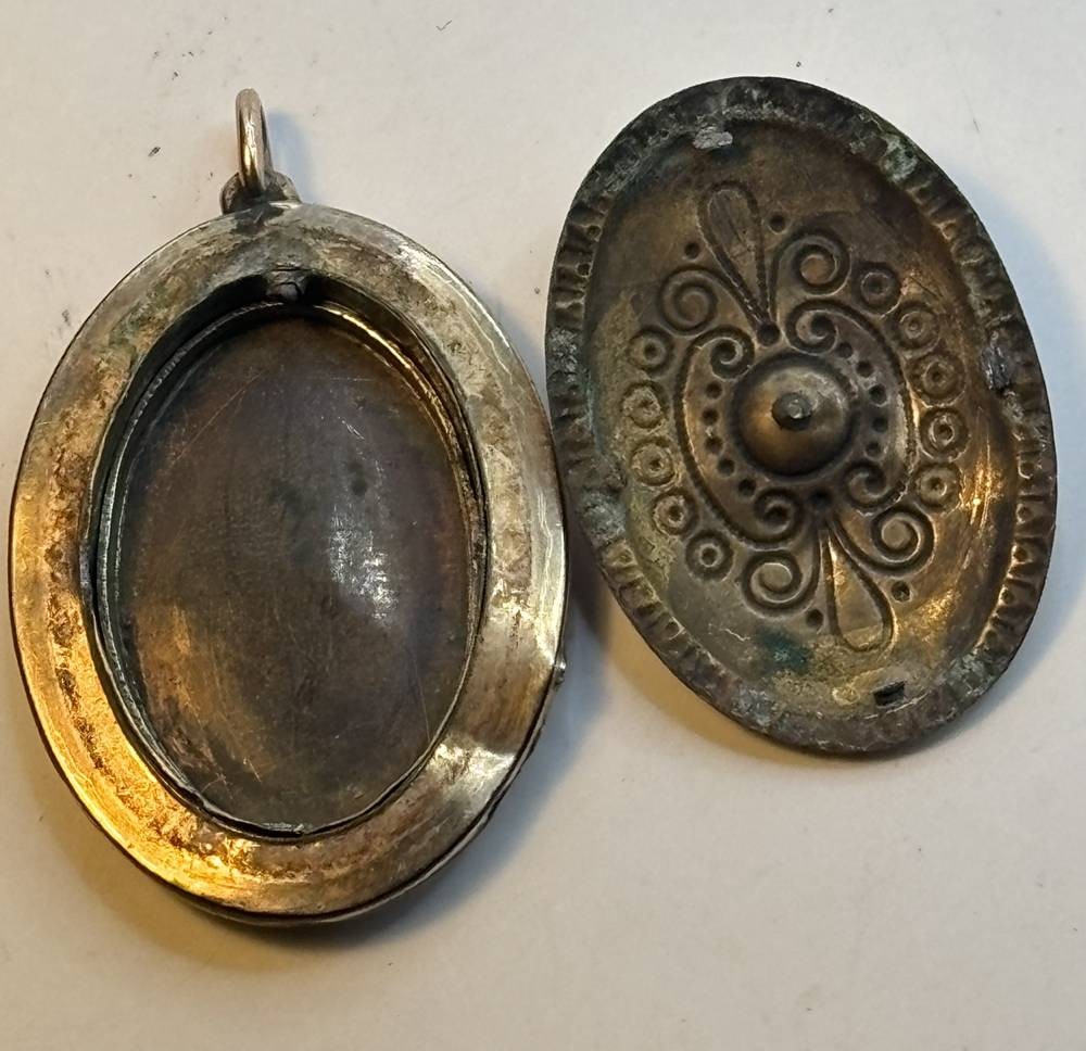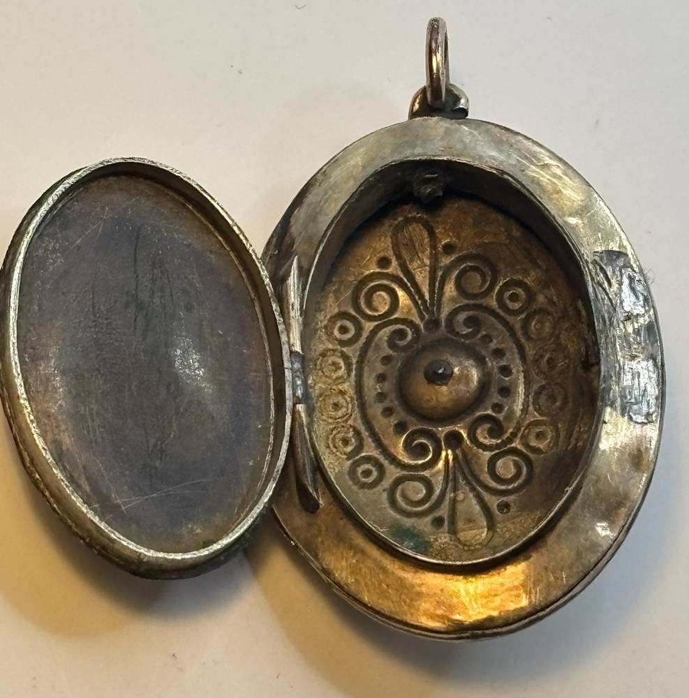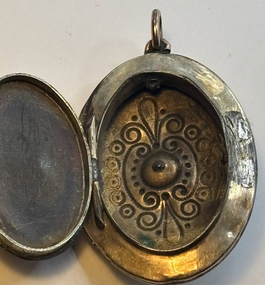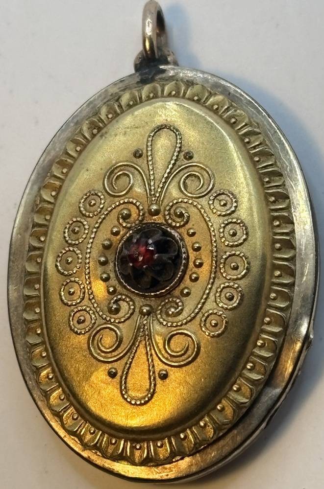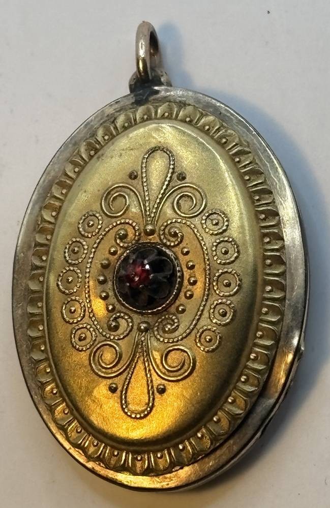 Medaillon um 1870, Deckel Double mit roten Stein, , Altersspuren, Deckel lose, 4,5x3 cm [1]