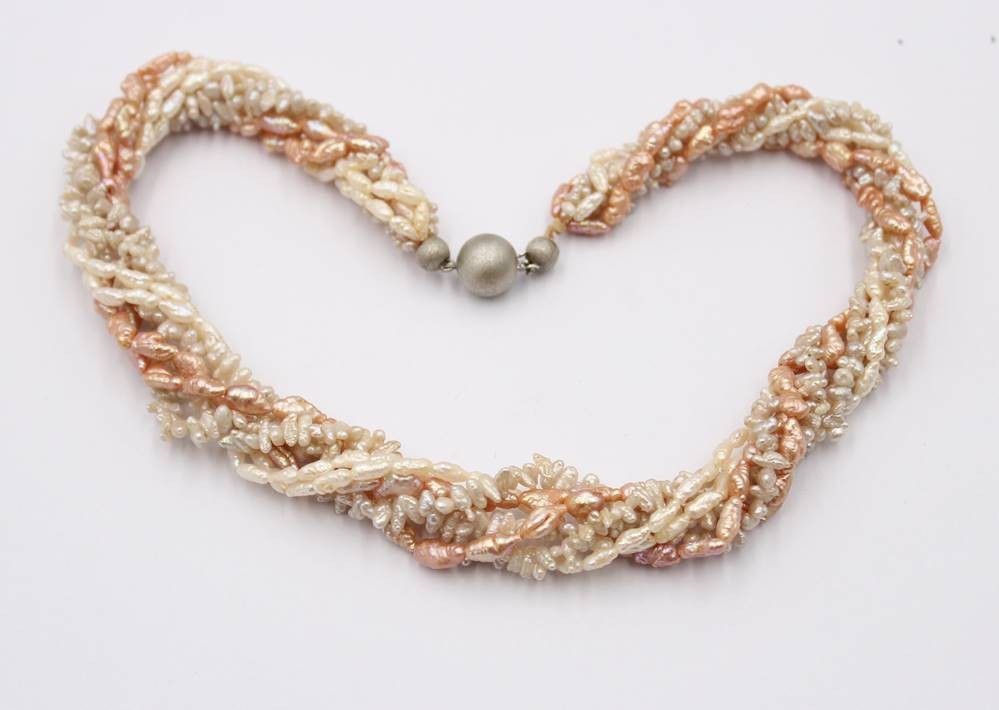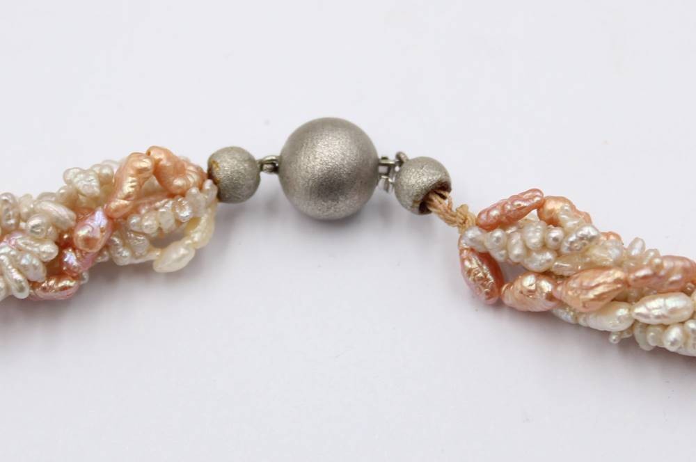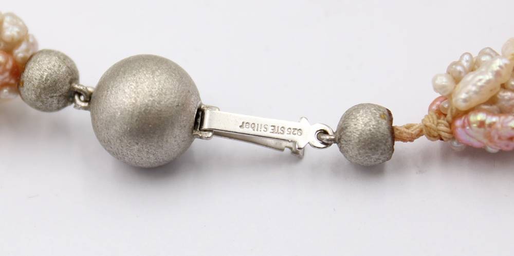 mehrreihige SW-Perlenkette mit Silberschließe, ca. L-38cm [1]