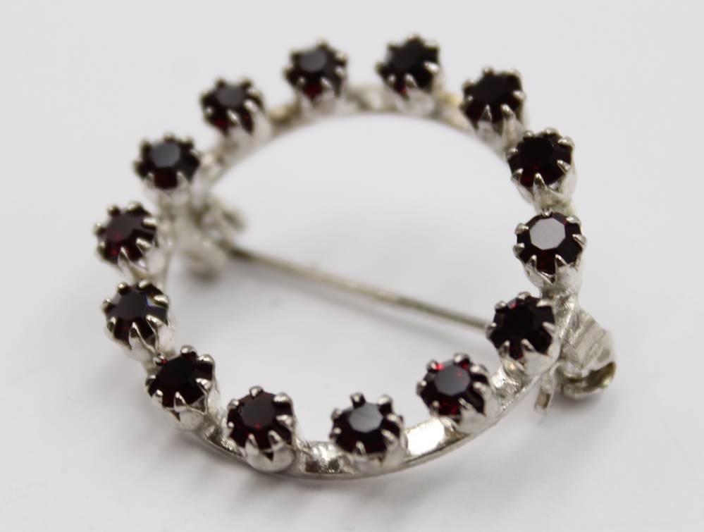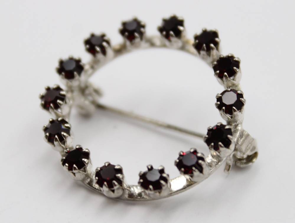 Modeschmuck-Brosche, rote Steine, D-2,6cm [1]