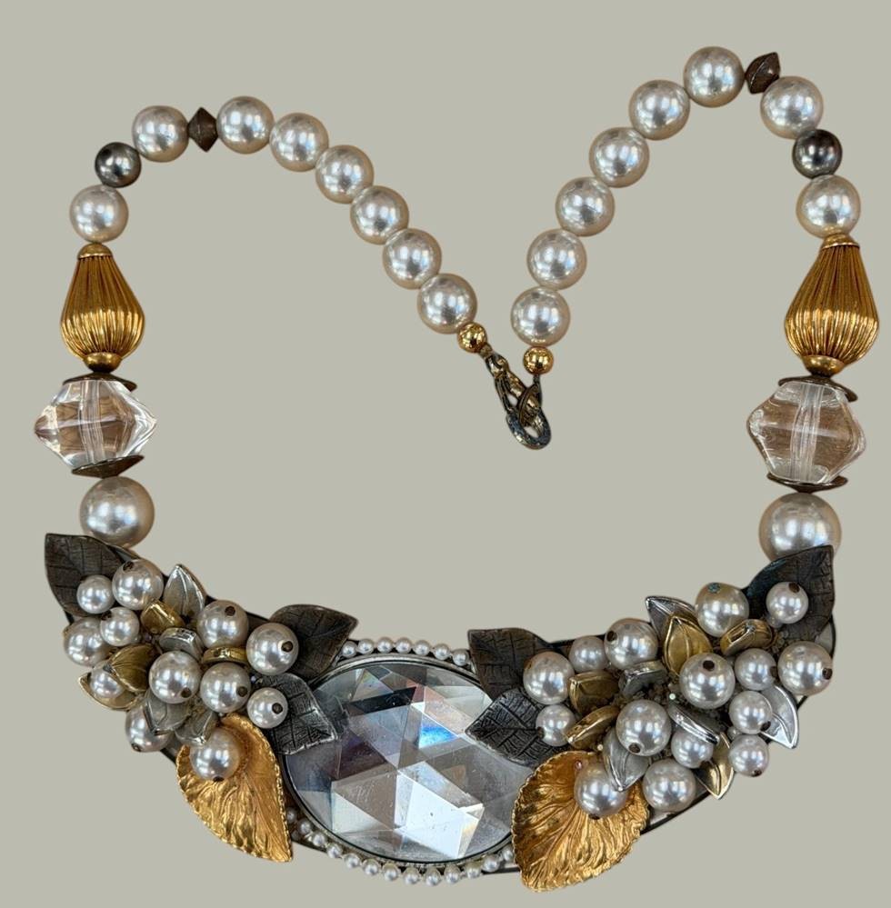 Modeschmuck Collier mit Perlen und facett. klaren Centerstein, wohl Glas, L-ca. 43 cm [1]