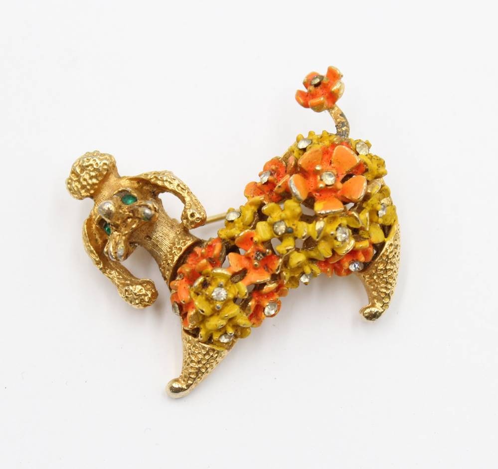 Modeschmuckbrosche in Pudelform, ca. 3,8 x 2,8cm