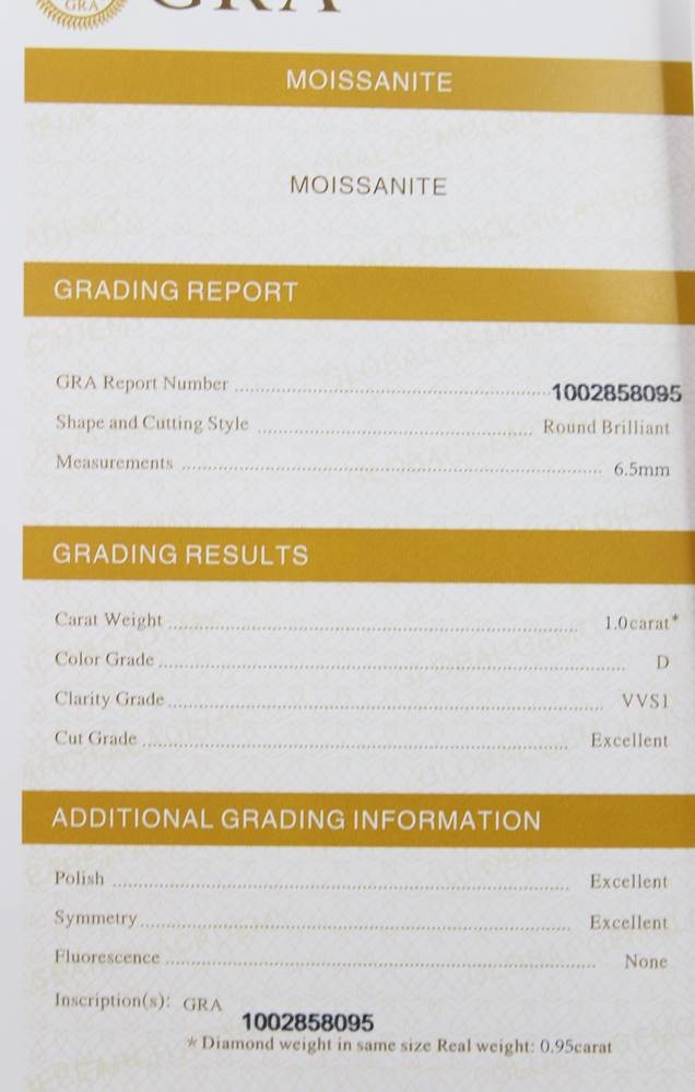 Moissanit-Ring, 1ct, Silber, 1,6gr., RG 56, anbei Zertifikat [1]