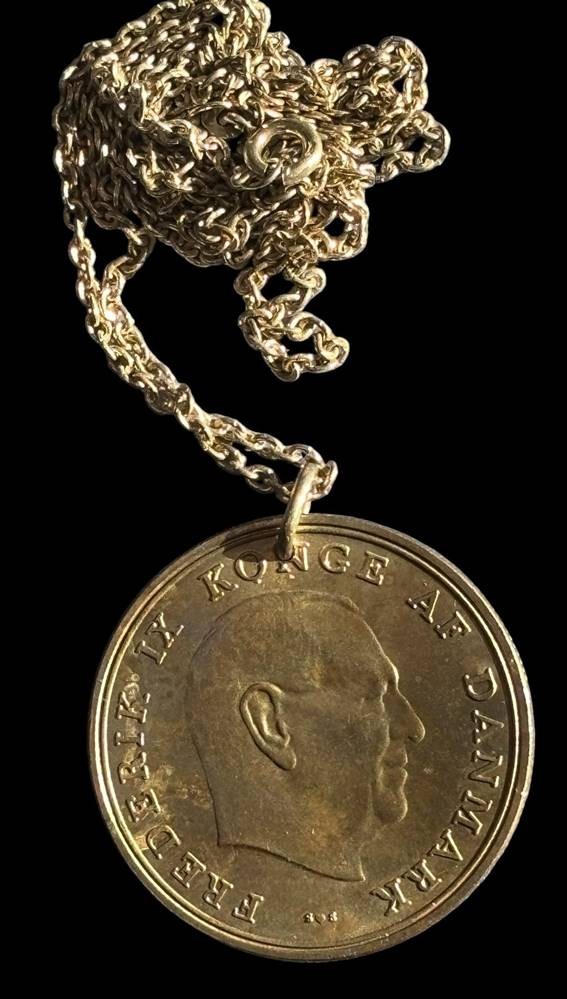 Münzanhänger, 5 Kronen 1972, Dänemark,an Kette, beide Silber, zus. 19,7 gr [1]