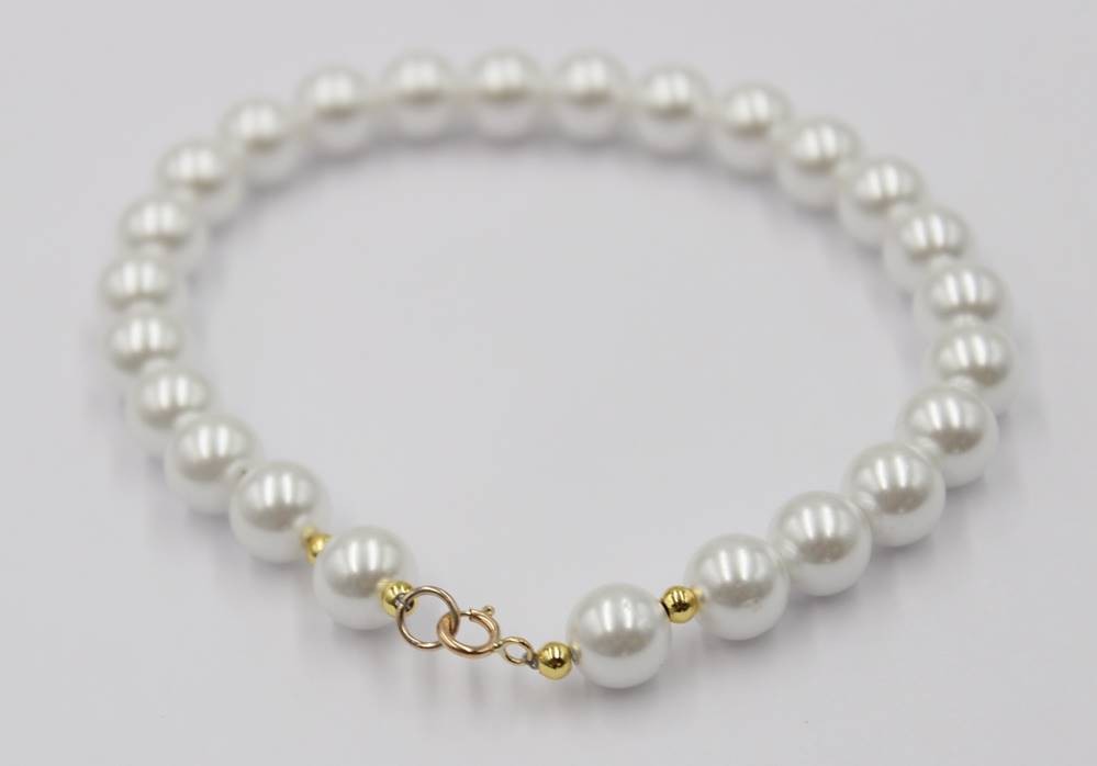 Muschelkern-Perlenarmband, 14K Goldschließe, ca. L-20cm [1]