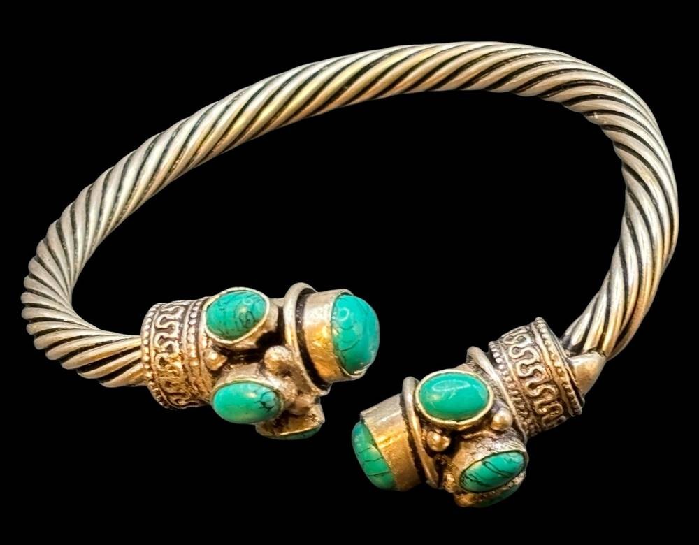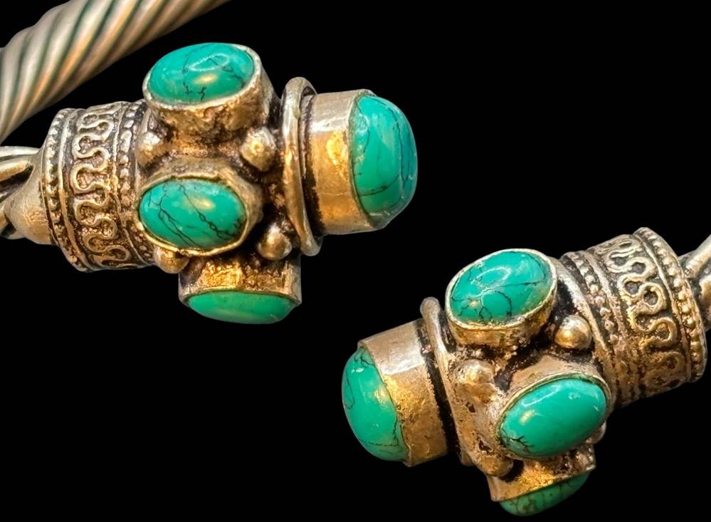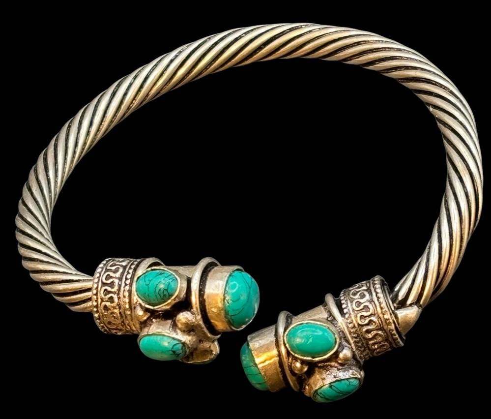 offener Armreif mit Türkisen, versilbert, 46 gr [1]