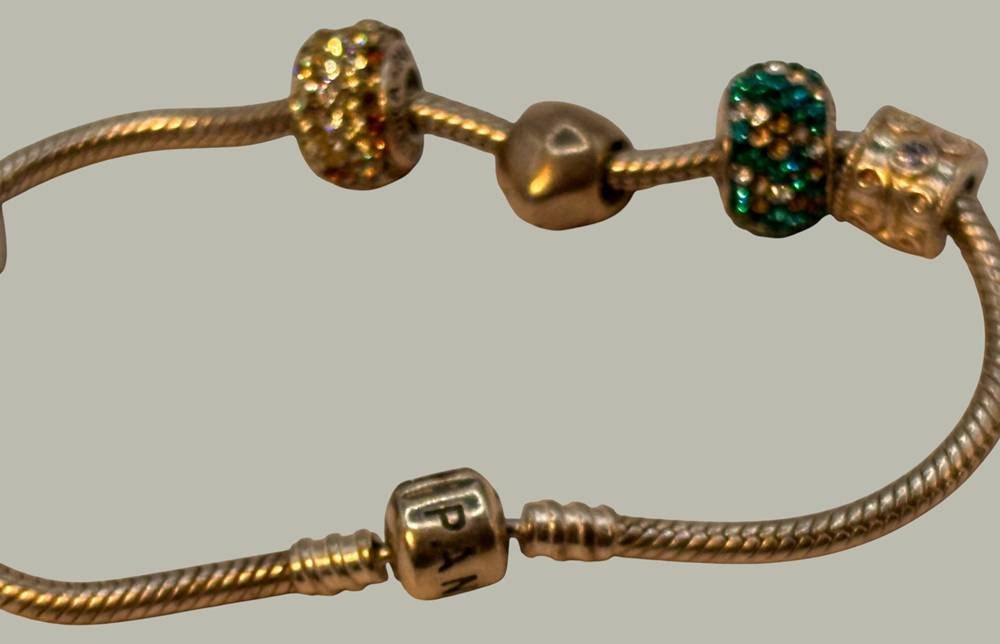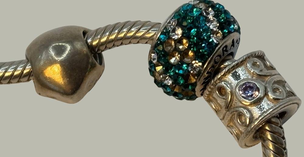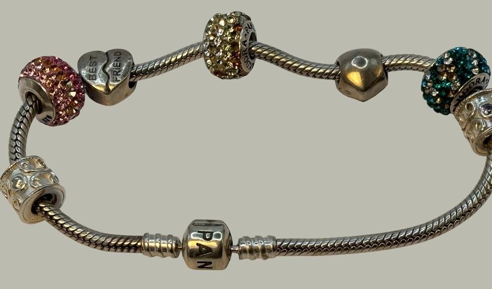 orig. Pandora Armband mit 7 versch. Charms, 33,5 gr. [1]