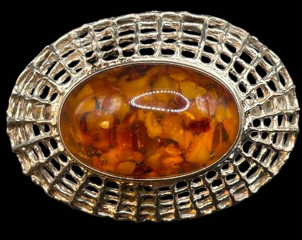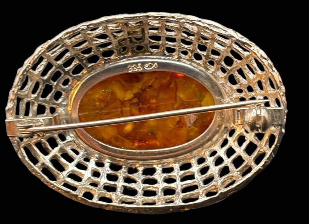 ovale Brosche mit Bernstein, Silber-835-, Fischland, 4x3 cm, 10,9 gr [1]