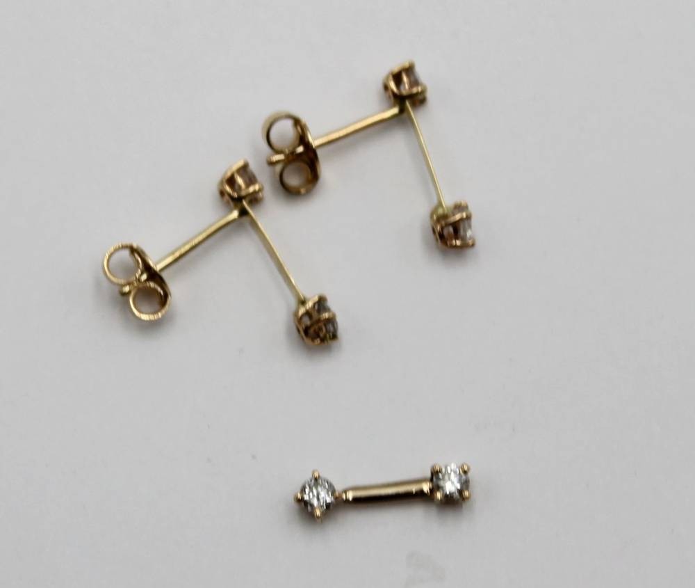 Paar 14 K GG-Ohrstecker sowie kl Steg? , je mit kl. Brillanten, zus- ca. 0,35ct, 1,3gr, L-1,7cm