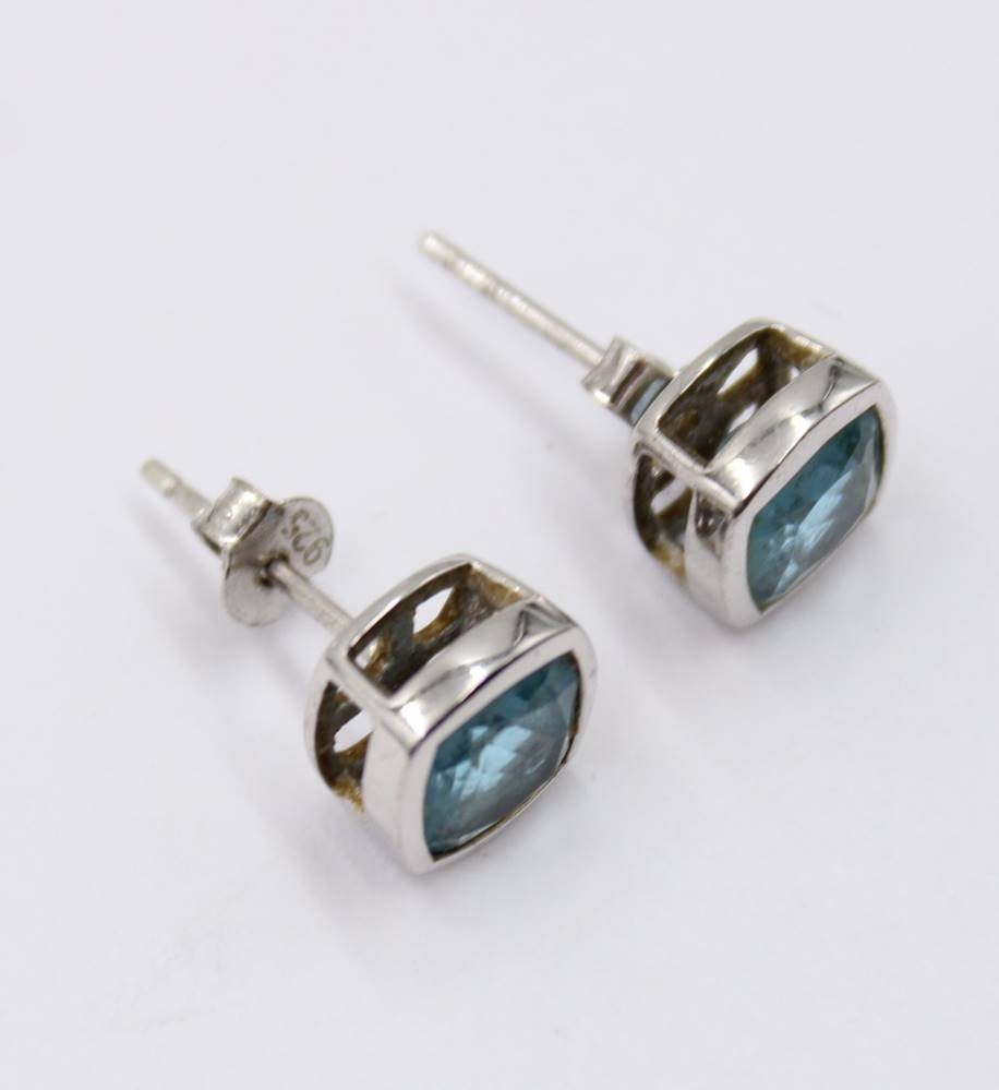 Paar 925er Ohrstecker, Blautopas, 3gr., ca. D-0,9cm