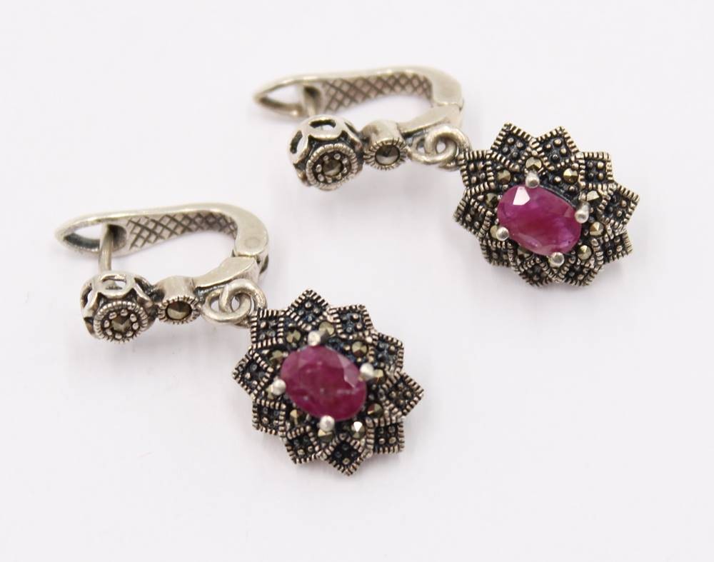 Paar 925er Silber-Ohrhänger, Rubine und Markasiten, 10,5gr., L-3cm [1]