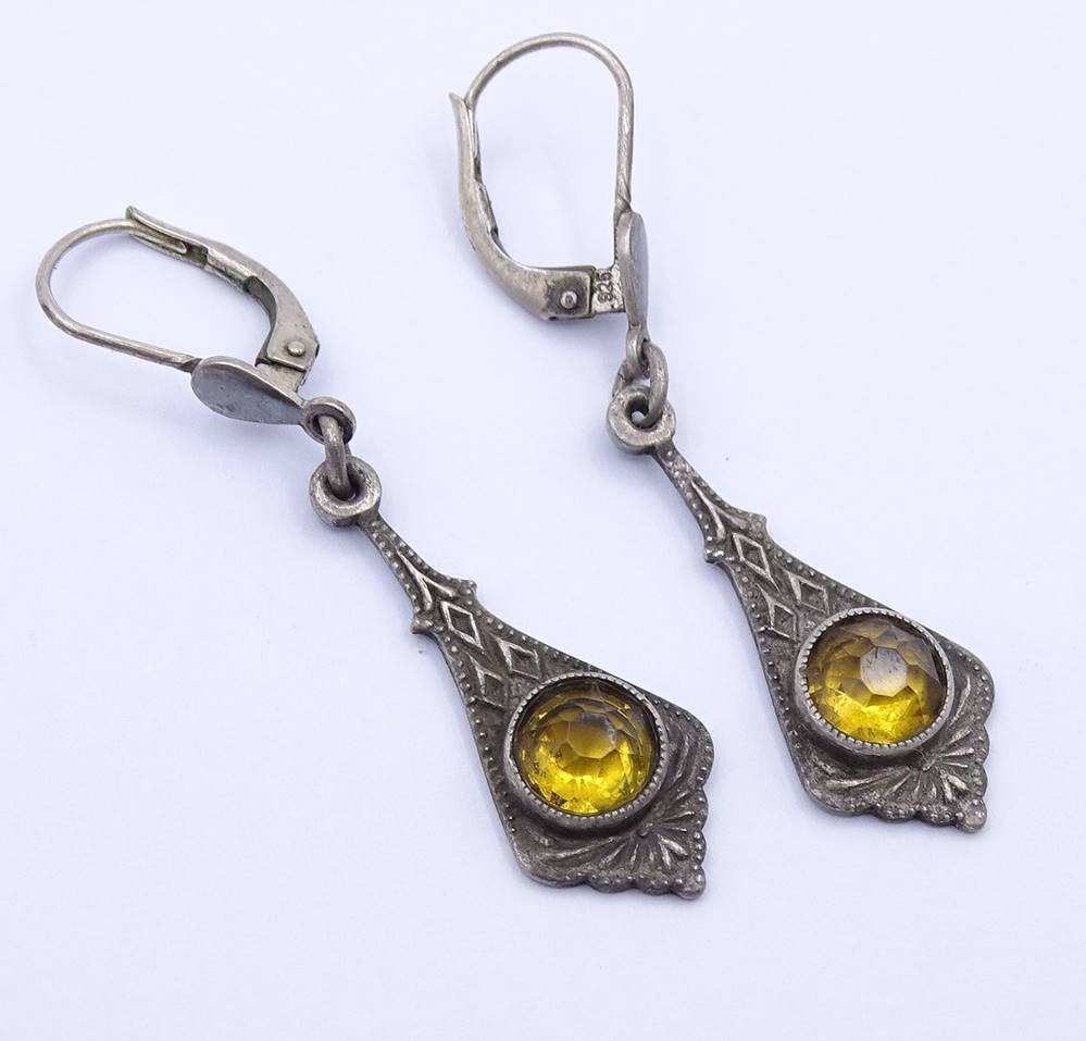 Paar alte Ohrhänger mit Citrine, Silber 925/000, L. 4,3cm, zus. 3,4g. [1]