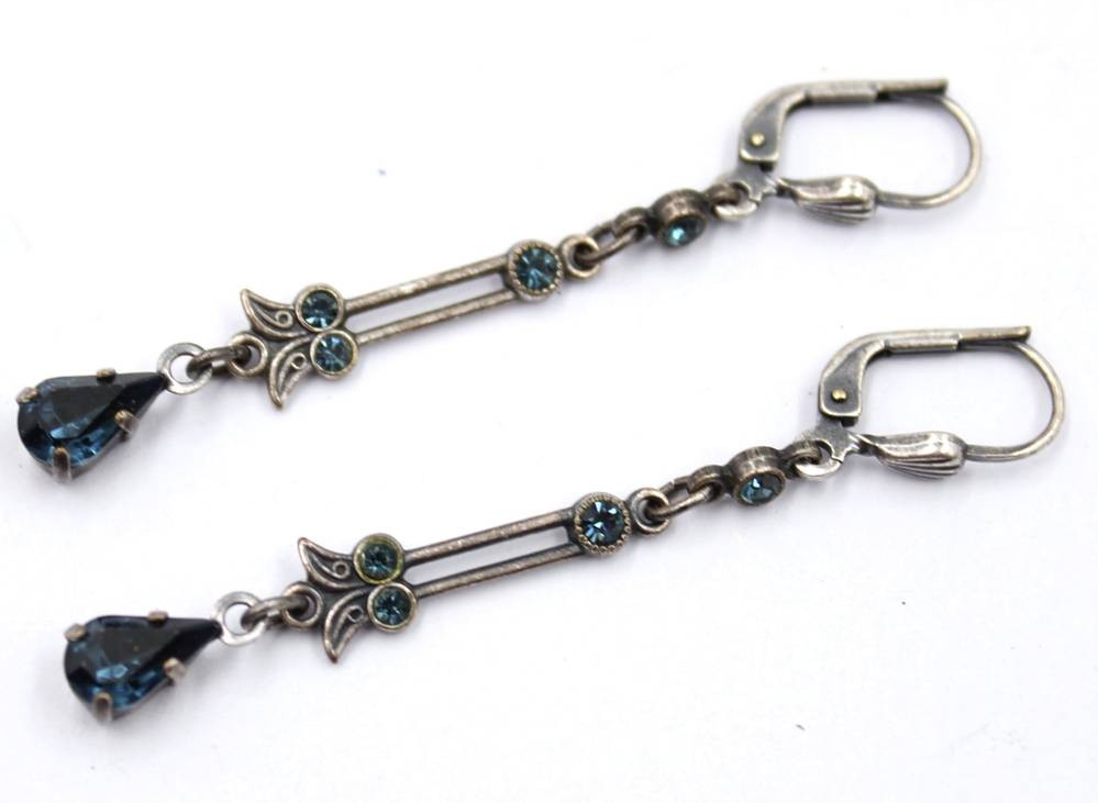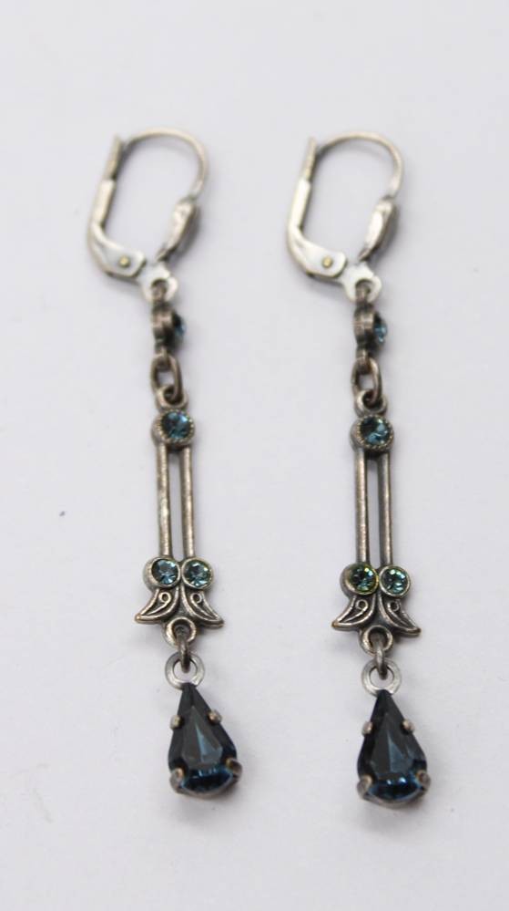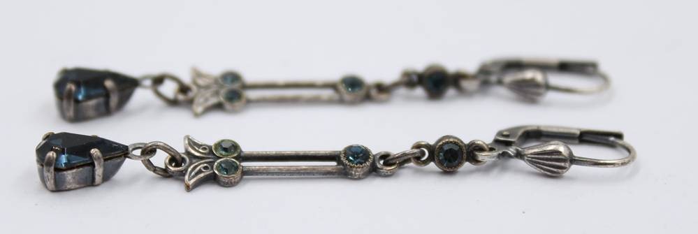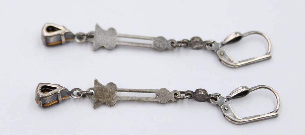 Paar antike Ohrhänger mit Farbsteinbesatz, zus. 2,5gr., L-5cm [1]