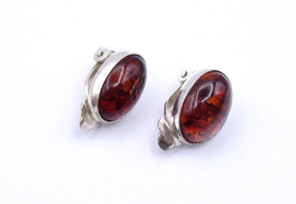 Paar Bernstein Ohrclips, Silberfassung 925/000, zus. 4,4g., 1,4x1,1cm [1]