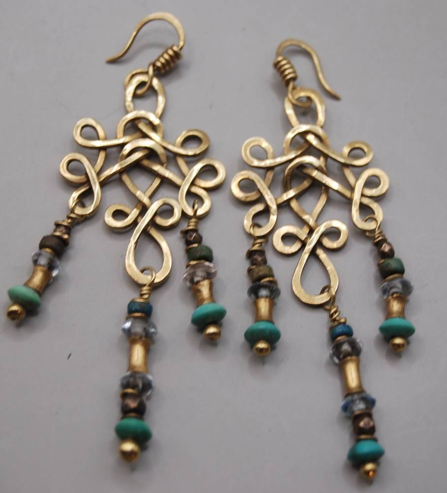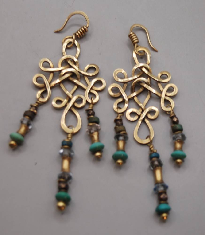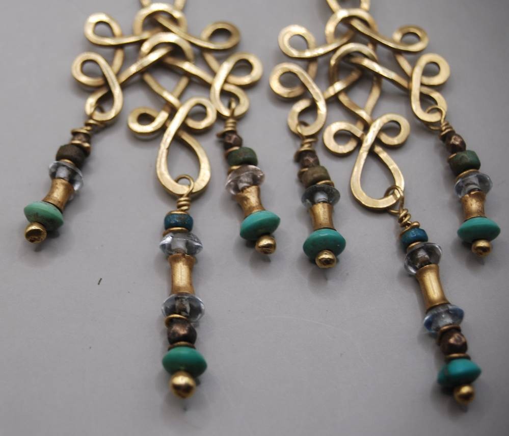 Paar gr. goldene Ohrhänger, Gold um 18 Kt oder mehr? 20K? .,18m kt. geprüft! zus. 13,3 gr., mit Türkisen, L-ca. 7 cm, Handarbeit, wohl Indien? [1]