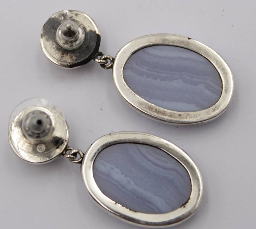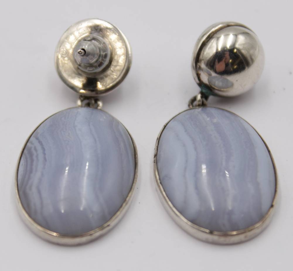Paar gr. Ohrstecker, Chalcedon, Silberfassung geprüft, wohl Perre Lang, ca. L-4cm, 13 gr. [1]