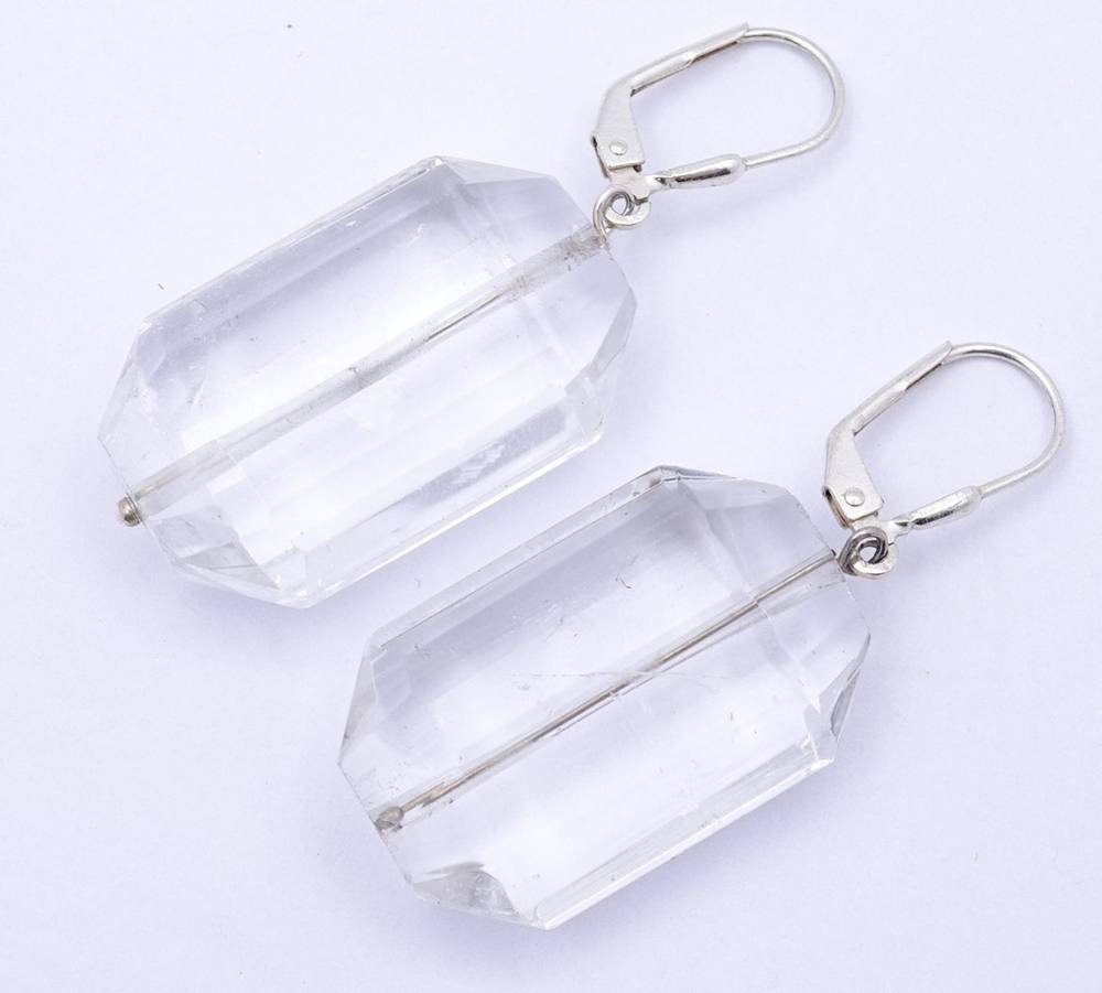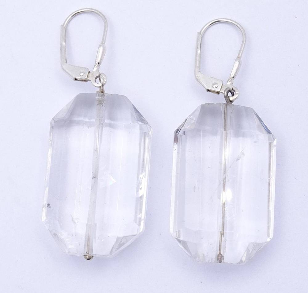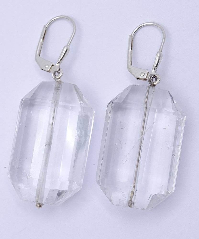 Paar grosse Ohrhänger, klare Steine (Bergkristall?) mit Sterling Silber Monturen,L- 4,7cm,zus.17,8gr., Tragespuren, [1]