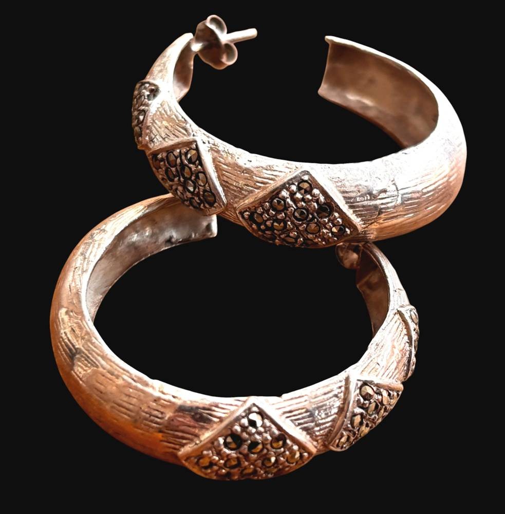 Paar grosse Silber -925- Creolen, D-ca. 3,3 cm, 23,6 gr
