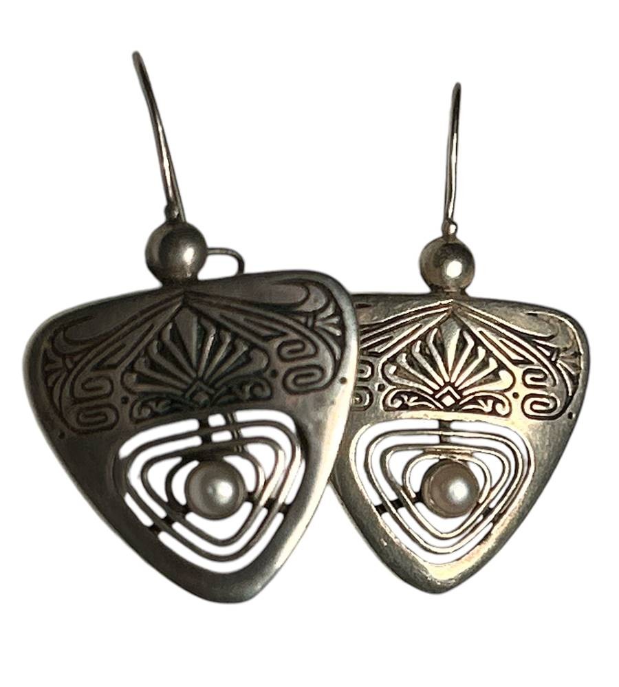 Paar grosse Silber-Ohrstecker mit Halbperlen, H-ca. 5 cm, 11,3 gr [1]