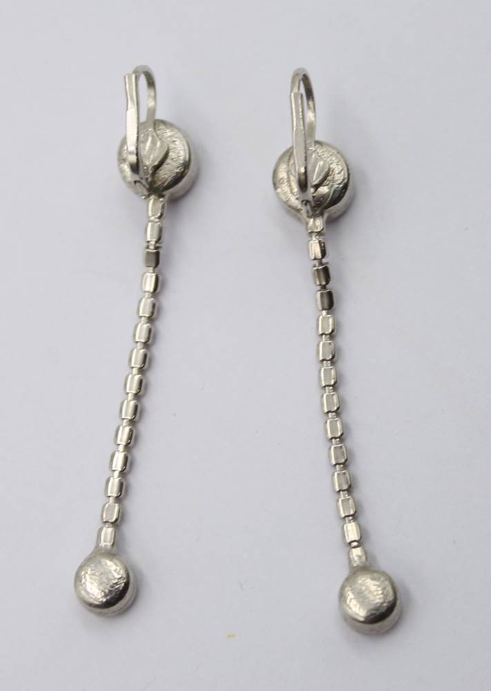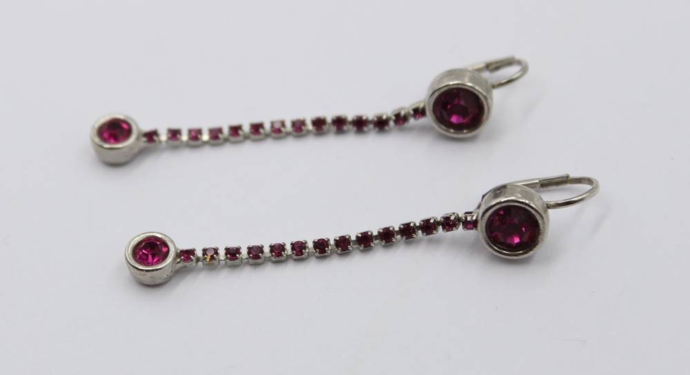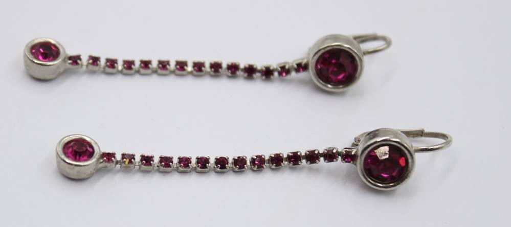 Paar lange Modeschmuck-Ohrhänger, pinke Steine, ca. L-6cm