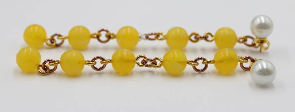 Paar lange Ohrstecker mit Farbsteinen, ca. L-8cm