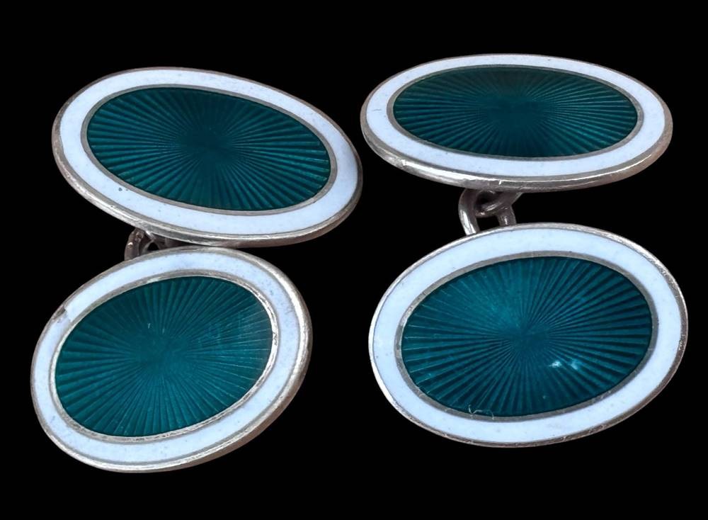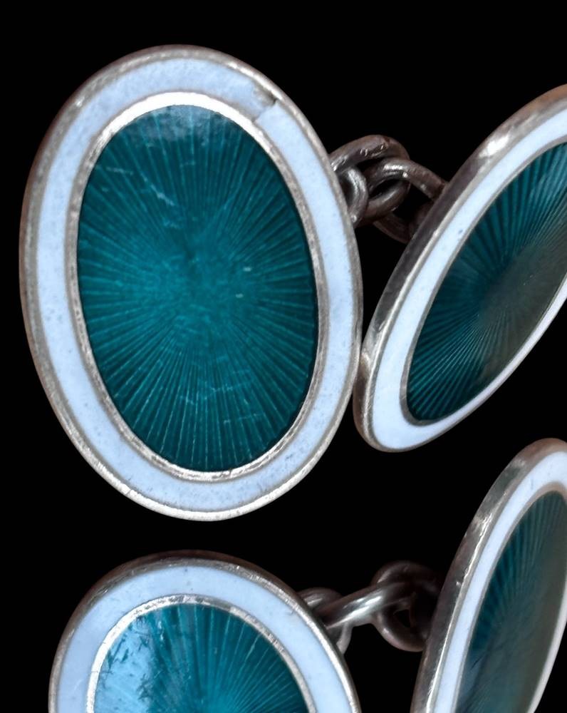 Paar Manchetten-oder Blusenknöpfe, Silber emailliert, H-1,8 cm, 8,7 gr [1]